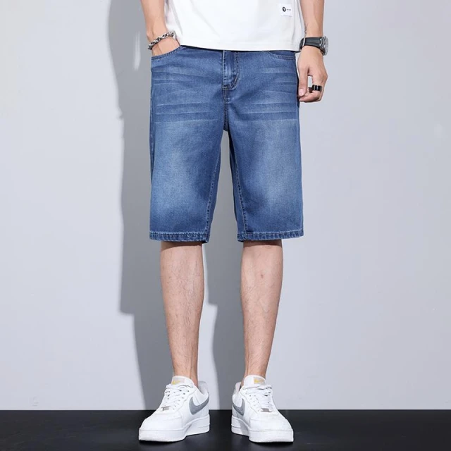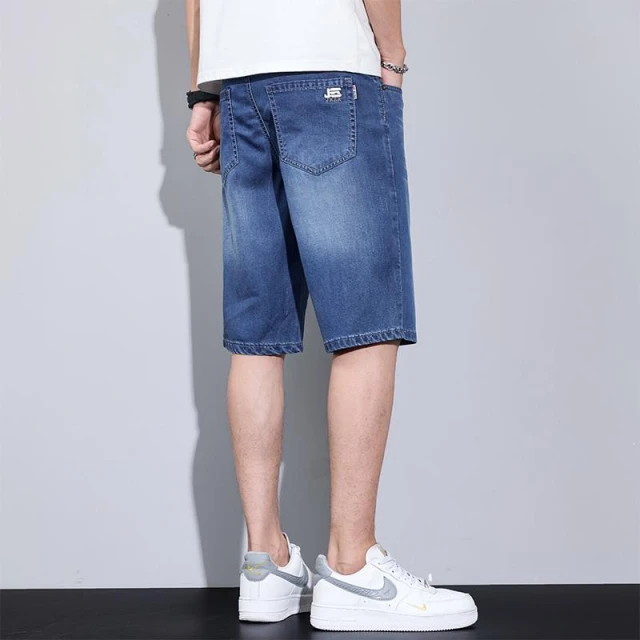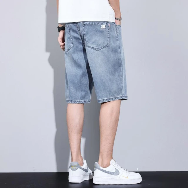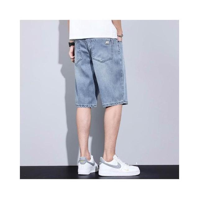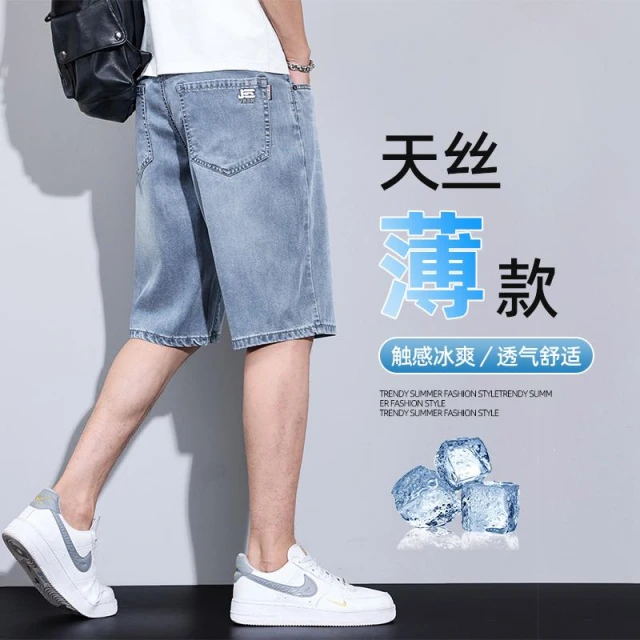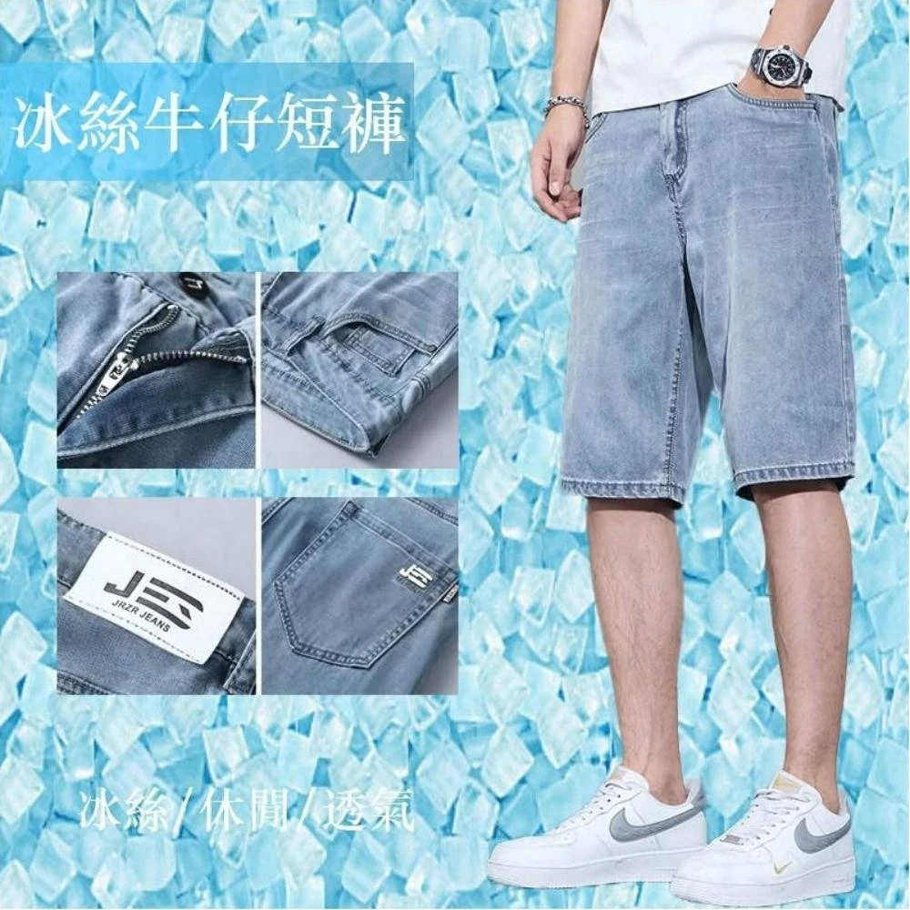 牛仔短褲男冰絲運動天絲萊賽爾寬褲時尚百搭5分短褲男士夏季薄款美式潮牌寬松直筒休閑耐磨五分中褲子男輕薄透氣吸濕排汗涼感寬褲