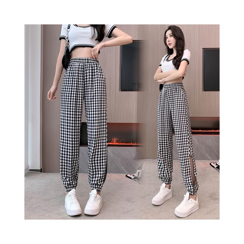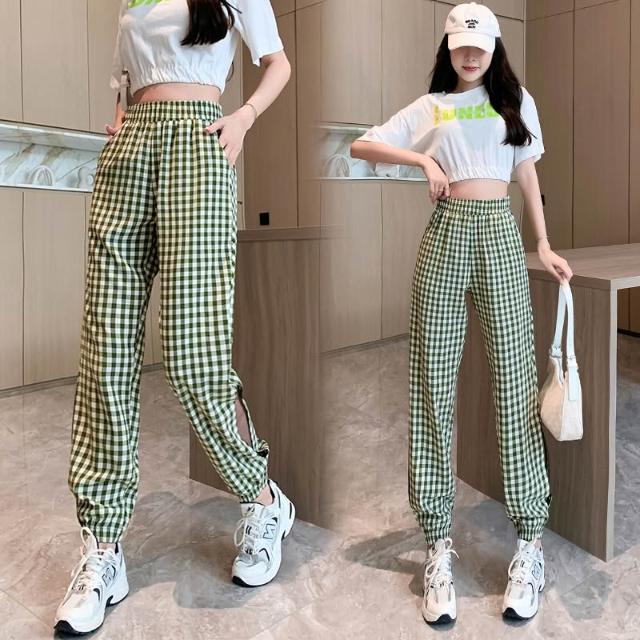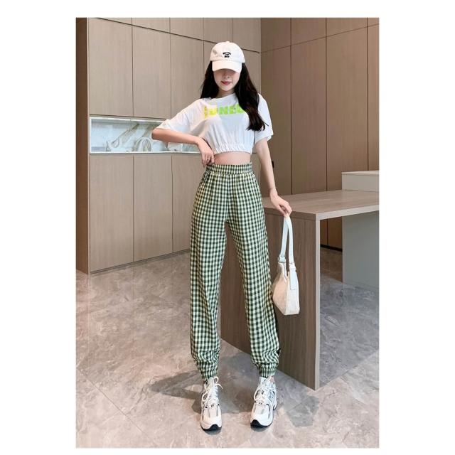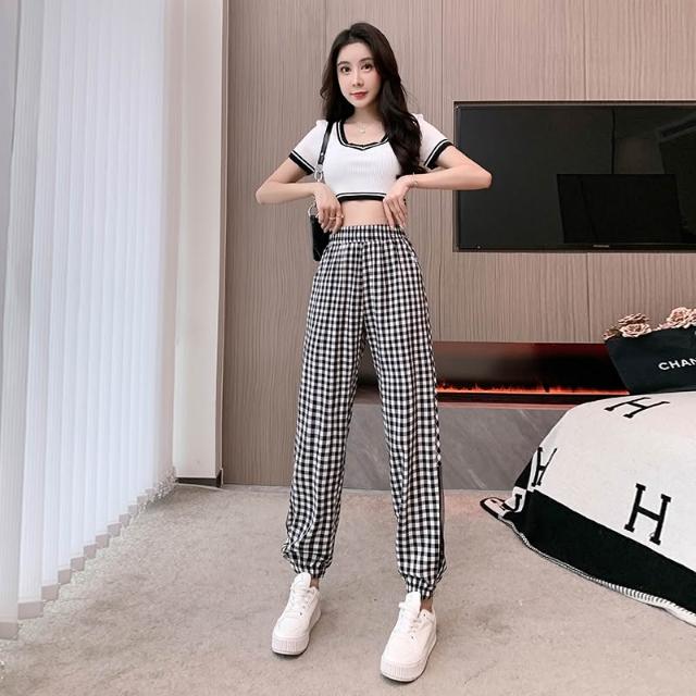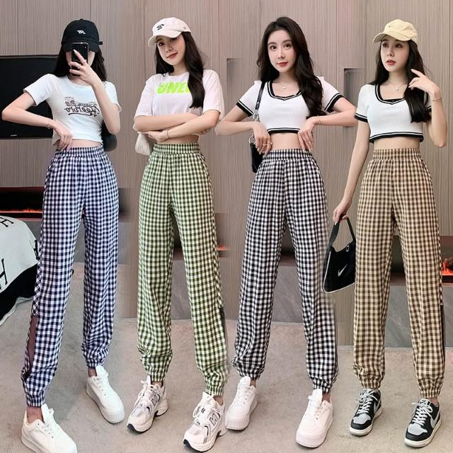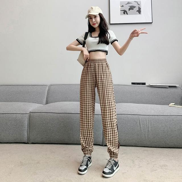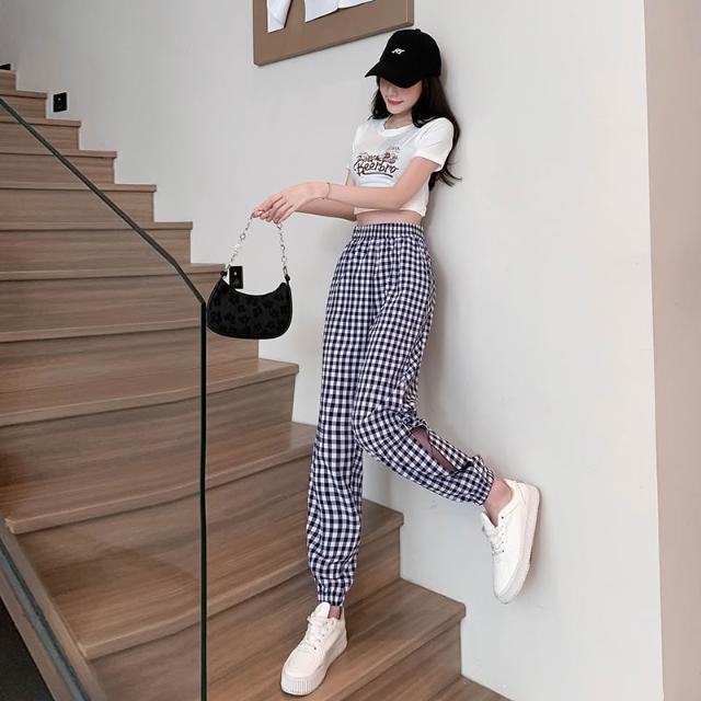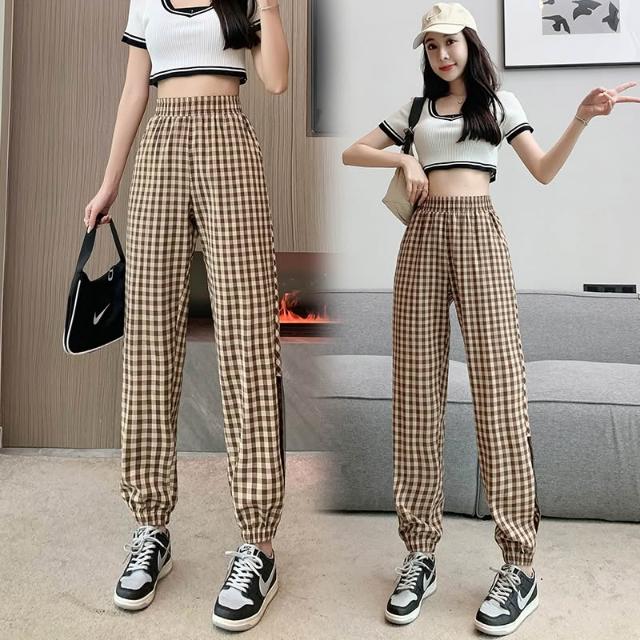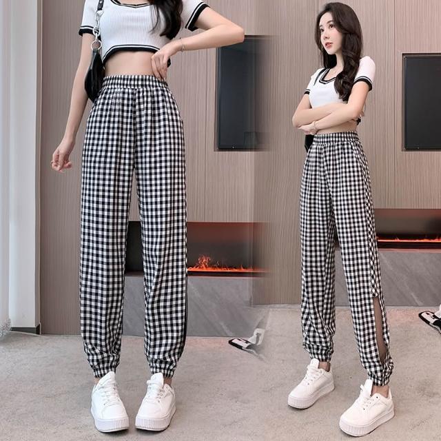 涼夏 休閒長褲 格紋長褲 女生褲子 顯瘦長褲 褲子女 女褲 夏季長褲 休閒褲女 女生長褲 長褲女