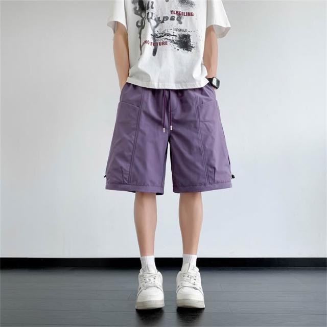 M-4XL 夏季 沙灘褲 運動短褲 休閑 寬松 直筒 百搭 五分褲男 純色 工裝 透氣 運動褲子男 五分褲 短褲 男運動短褲