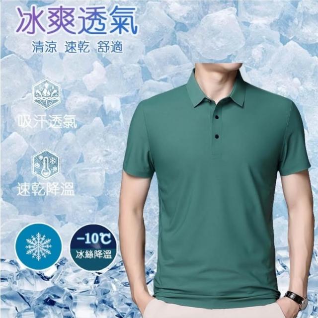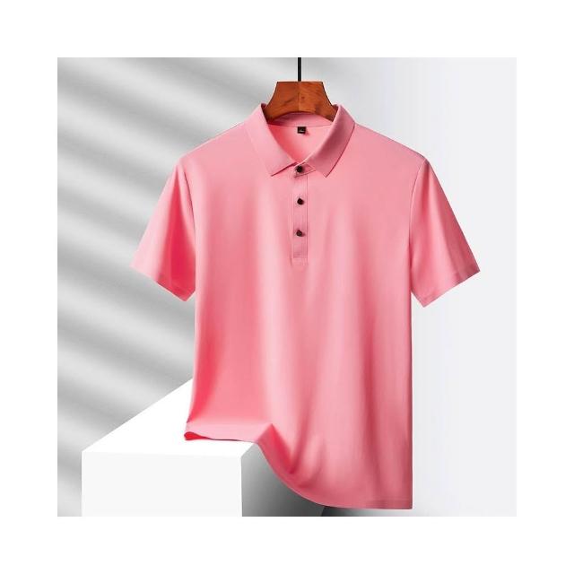polo衫男大尺碼冰絲涼感衣夏天吸濕排汗運動薄款上衣爸爸高級感年輕男裝t恤速乾透氣商務修身短袖男款粉紅高爾夫球衣羽球衣