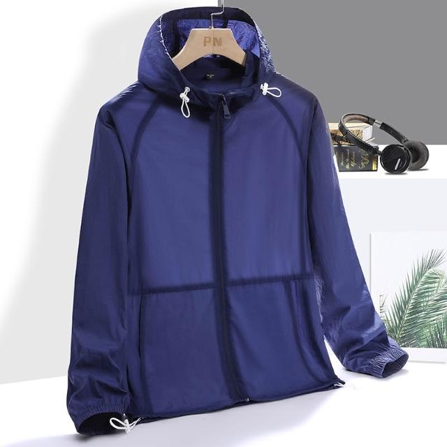 UPF50+防曬外套男抗UV薄冰絲涼感戶外釣魚防紫外線防曬衣夏季冰感絲滑防紫外線皮膚衣運動休閒風衣戶外騎行連帽速乾登山服