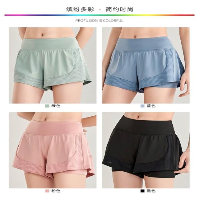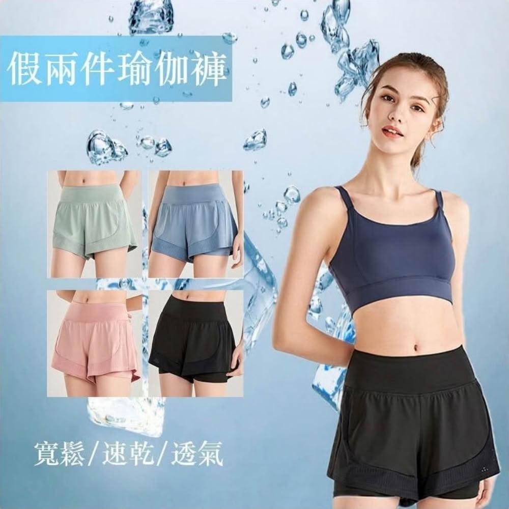 運動短褲女涼感冰絲速乾透氣寬鬆短褲夏天女款網眼多色柔軟簡約彈力褲裙防走光外穿吸濕排汗瑜伽健身房跑步短褲假兩件三分涼感寬褲