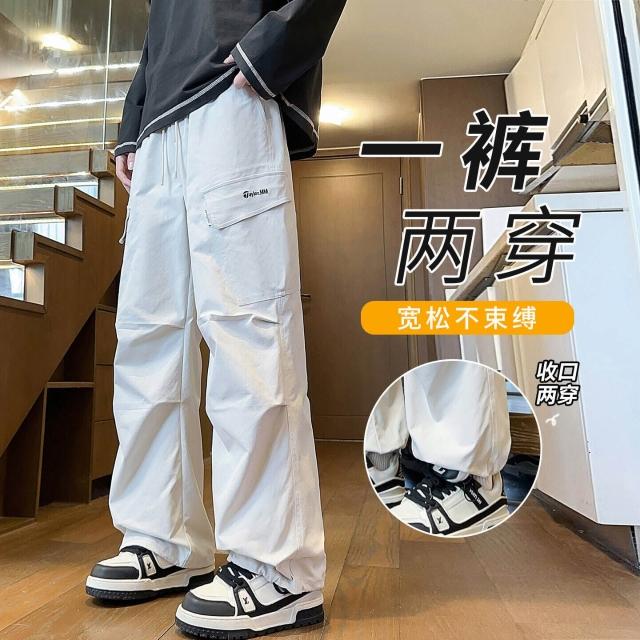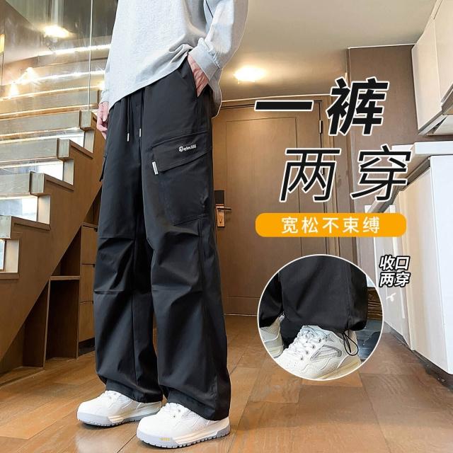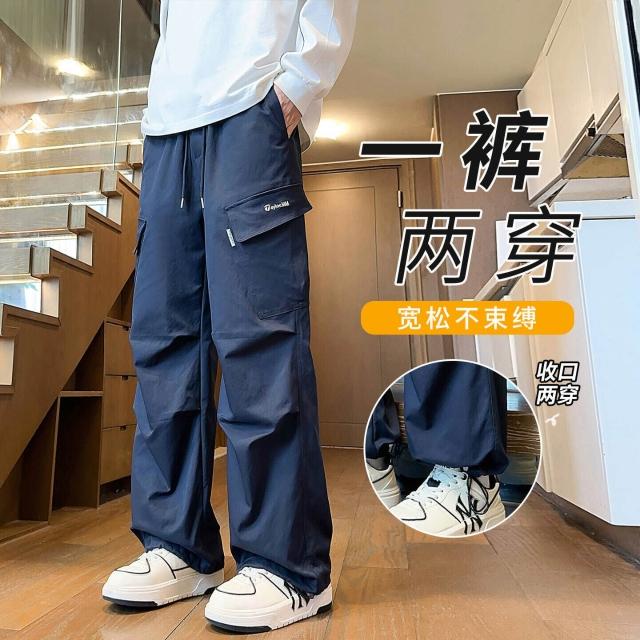 休閒褲男春秋季工裝褲子男孩國中國高學生闊腿直筒休閑長褲青少年大童男裝下著
