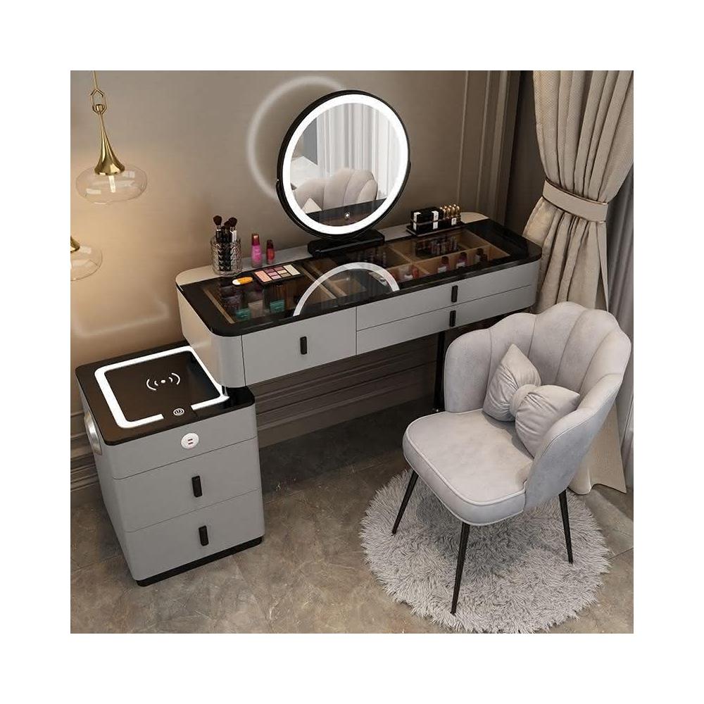 智能梳妝台 無線充電+藍芽音響+贈送四件套 臥室 北歐風 化妝桌椅組 鏡子化妝鏡 梳妝桌 梳妝檯 化妝檯 化妝品收納櫃