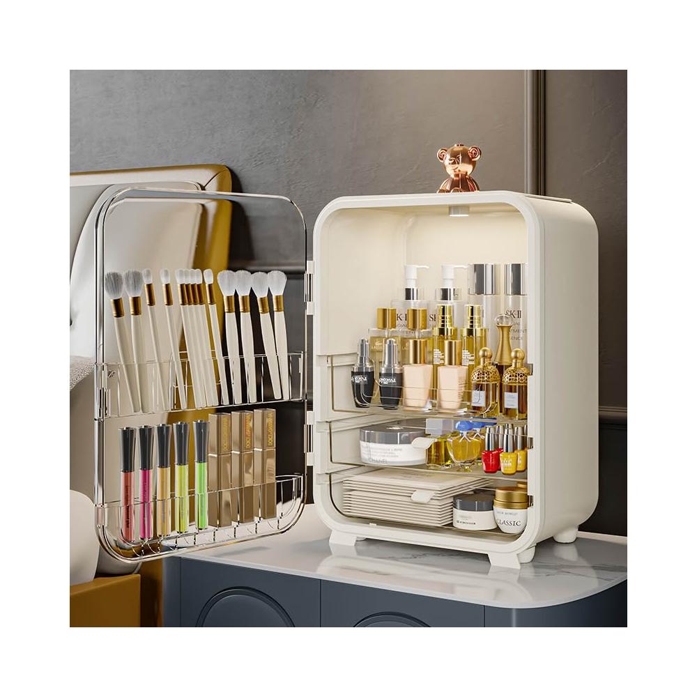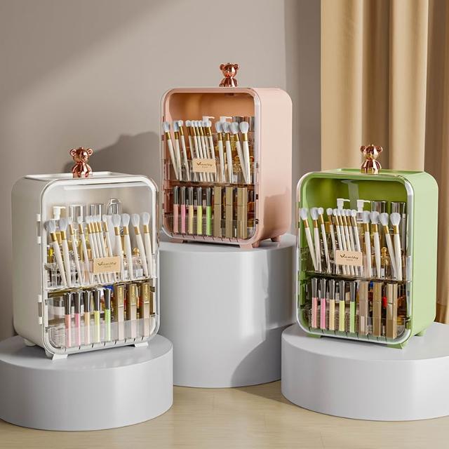 輕奢化妝品收納櫃 附鏡子(口紅刷具收納 保養品收納防塵箱 桌面大容量收納櫃)