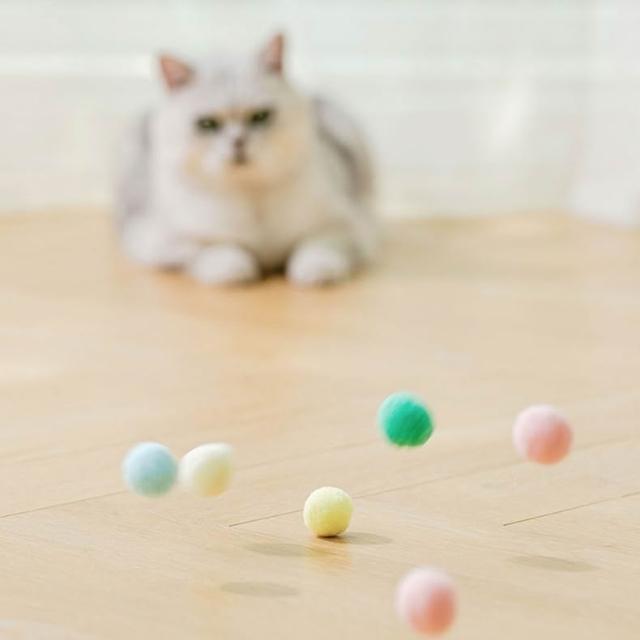 臺灣現貨 逗貓小球 靜音絨毛球 彈力球 彩色毛球 手作材料 逗貓球 彩色毛絨球 繽紛絨毛球 貓咪玩具 靜音球