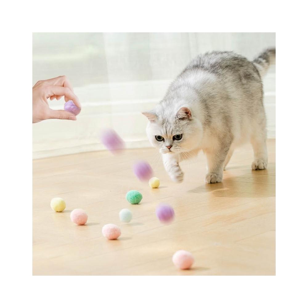 臺灣現貨 逗貓小球 靜音絨毛球 彈力球 彩色毛球 手作材料 逗貓球 彩色毛絨球 繽紛絨毛球 貓咪玩具 靜音球