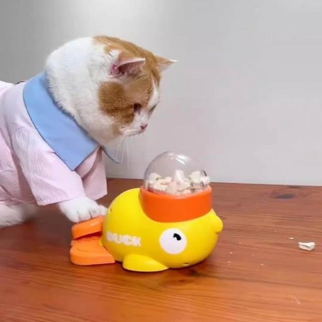 現貨熱銷 寵物玩具 貓咪漏食玩具 小黃鴨寵物自動餵食器 貓咪自嗨解悶玩具 寵物益智玩具 貓咪互動玩具發射器 寵物用品