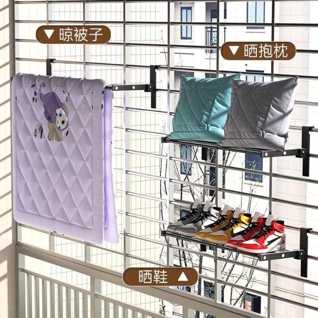 陽臺晾衣神器 防盜窗護欄 窗外晾衣架 窗戶伸縮 晾曬桿 窗檯涼鞋曬鞋架