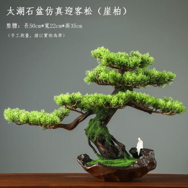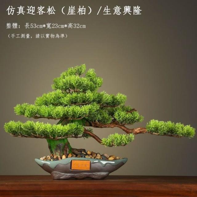 迎客松 仿真盆栽 開業送禮 招財擺件 入宅擺件 玄關擺件 財位擺飾 迎客松盆栽 微景觀擺件 假樹 崖柏松 美人松