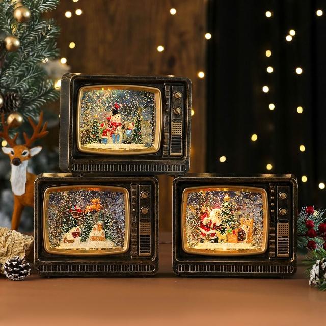 新款聖誕節音樂飄雪 註水電視機夜燈 禮物擺件 聖誕節裝飾品 八音盒