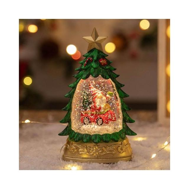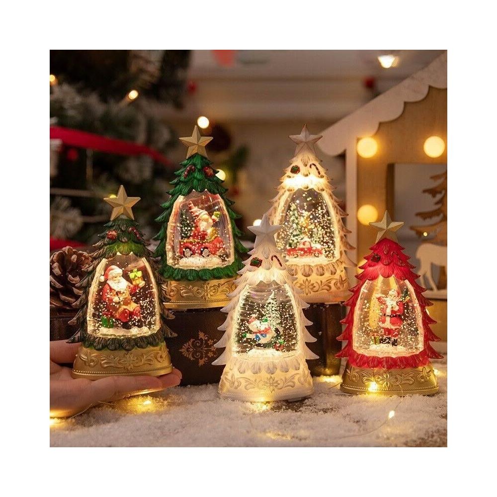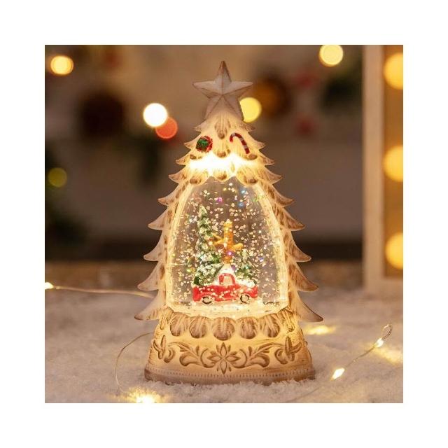 聖誕裝飾 發光聖誕樹水晶球 飄雪裝飾球 聖誕樹桌面擺件 夜燈