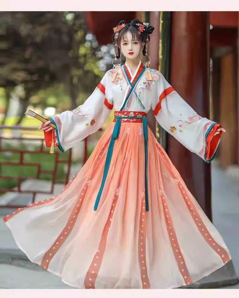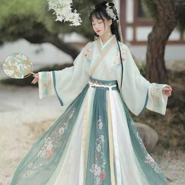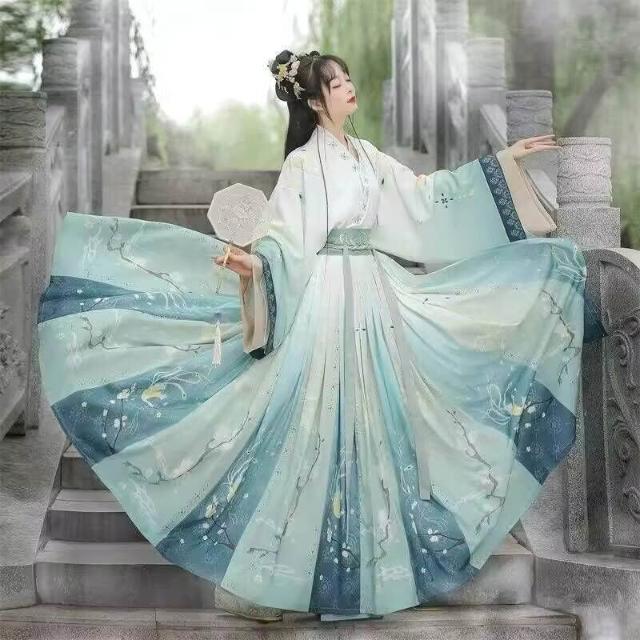 晉製印花交領齊腰襦裙 國風漢服 漢服女裝 傳統服飾
