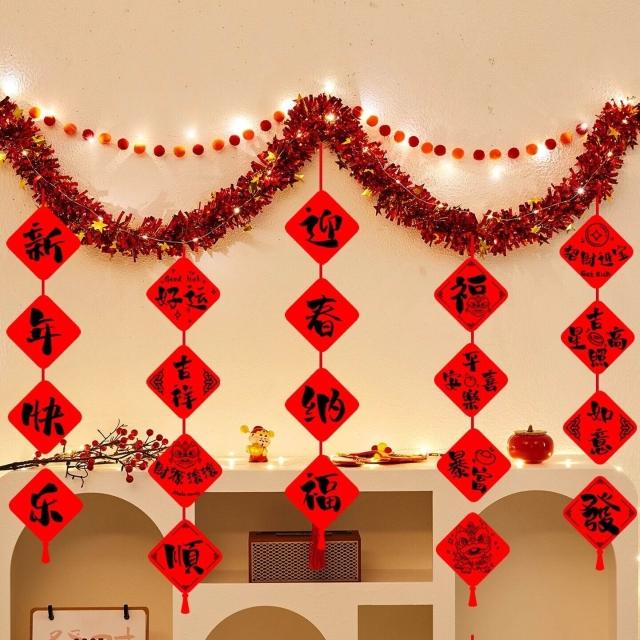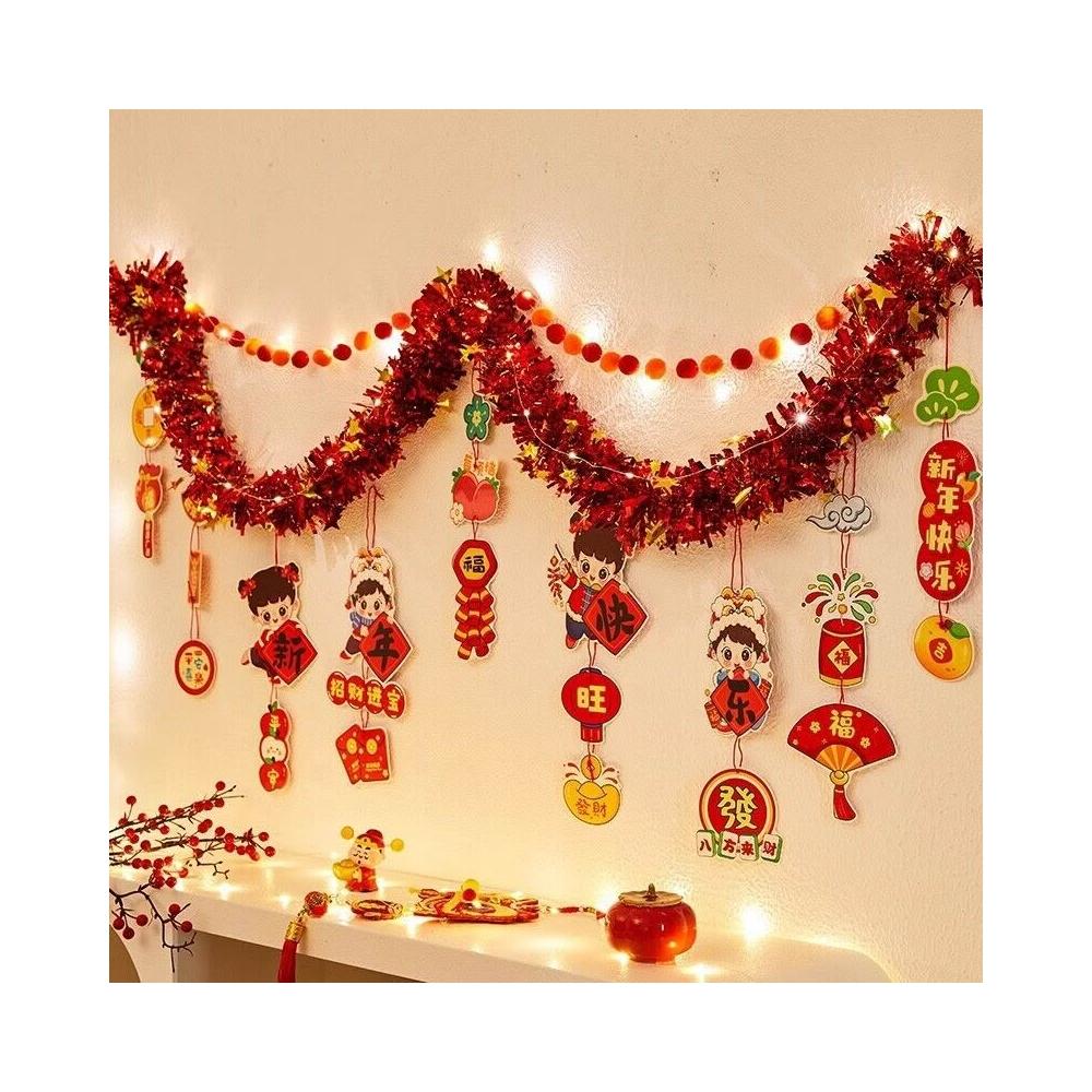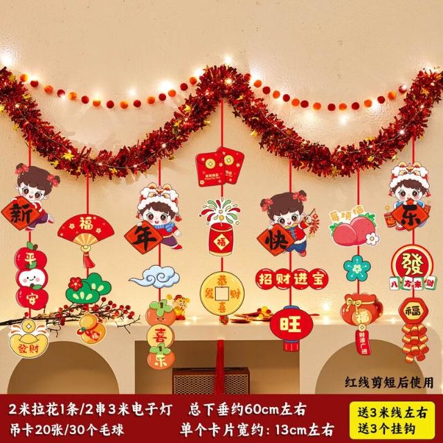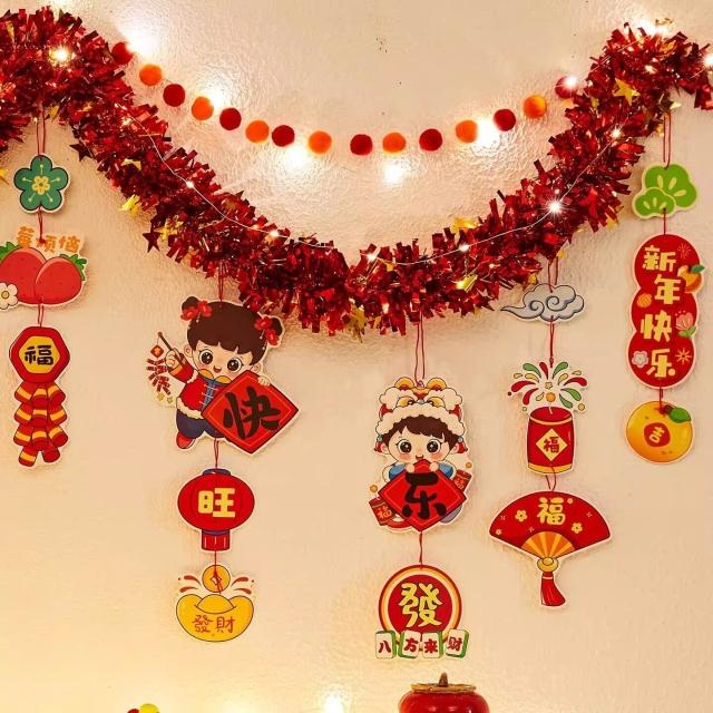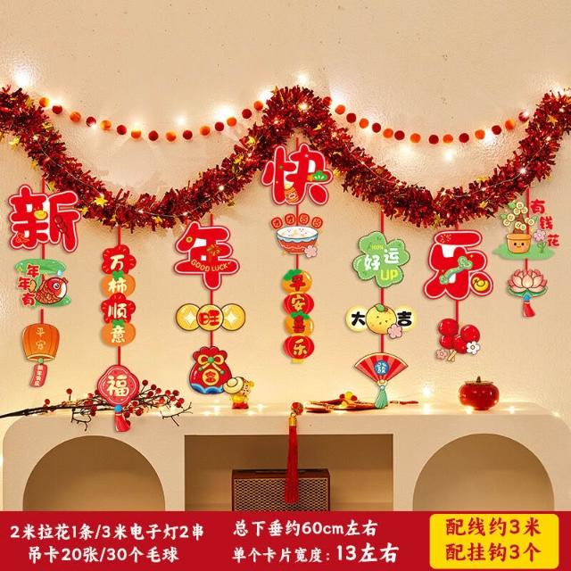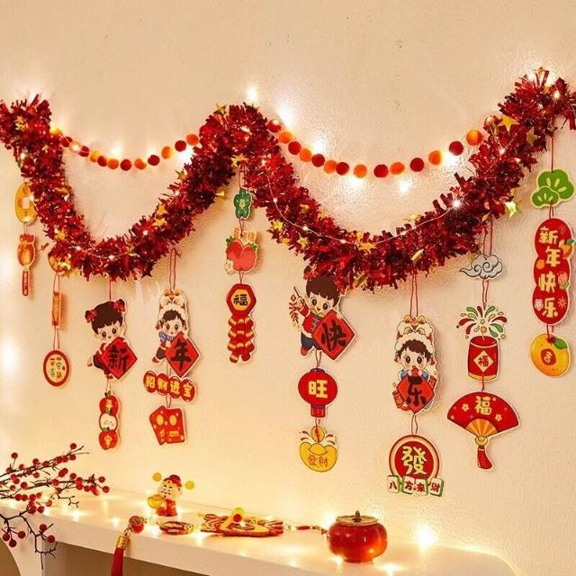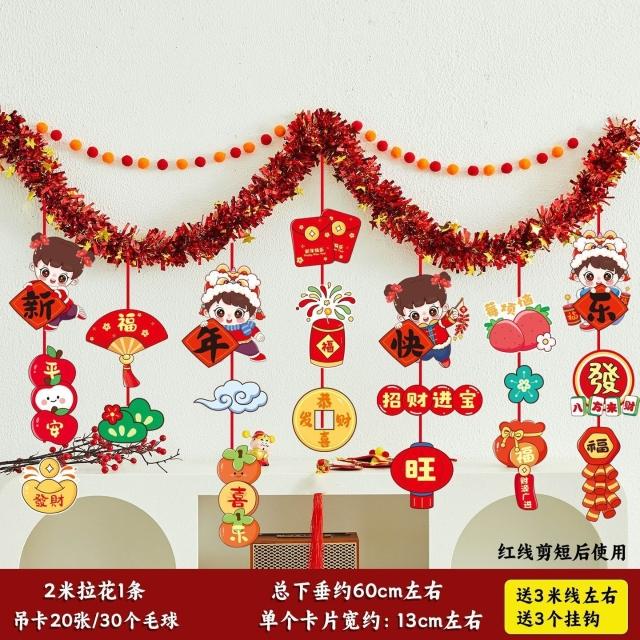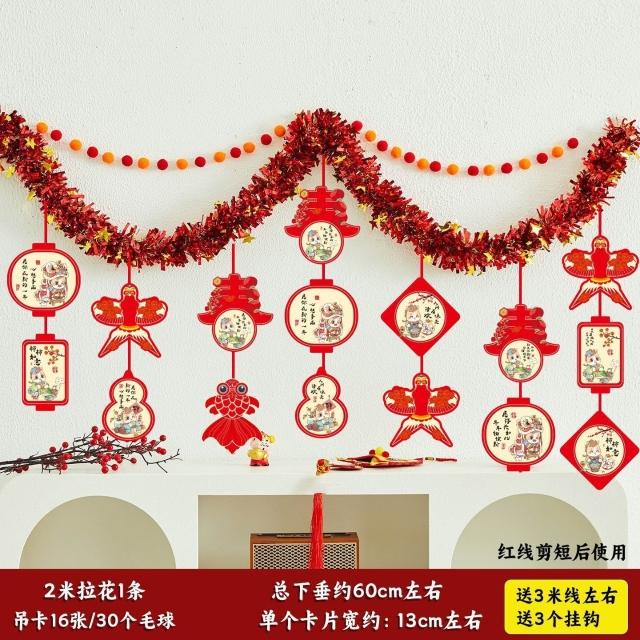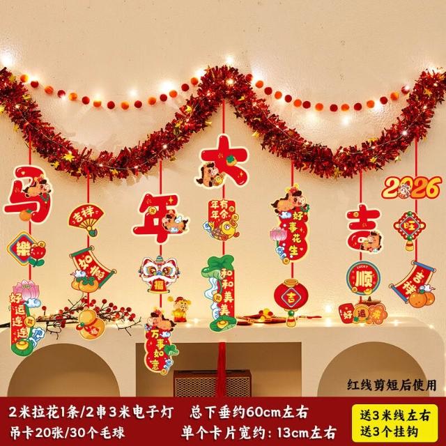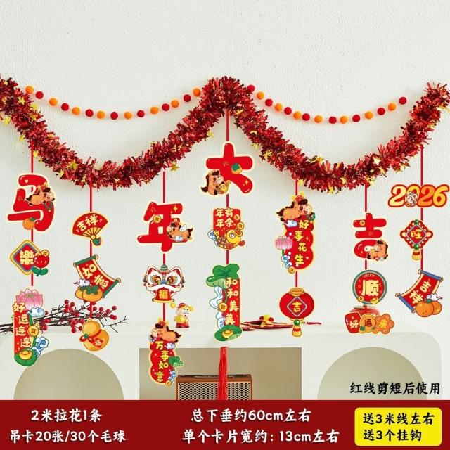 元旦裝飾 2026馬年室內氛圍背景墻吊飾拉花 新年掛飾場景布置
