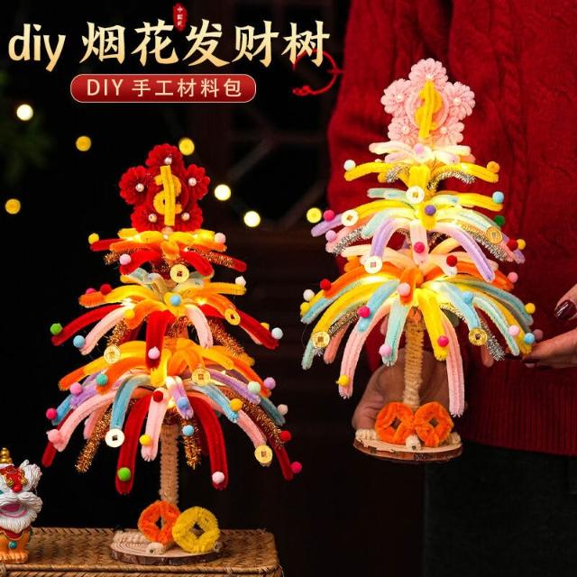 新年禮物 扭扭棒煙花 發財樹擺件 diy手工自製材料送朋友閨蜜小禮品