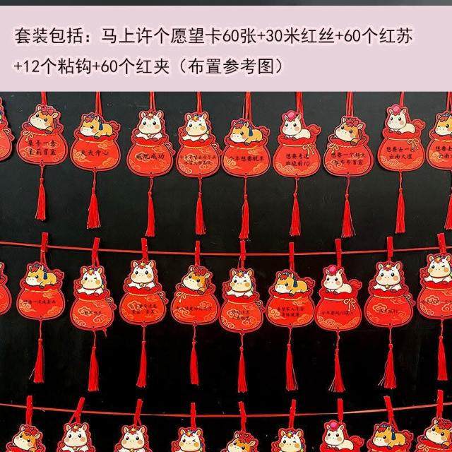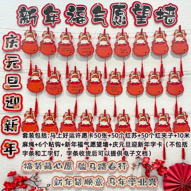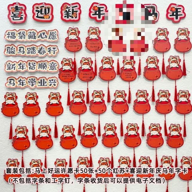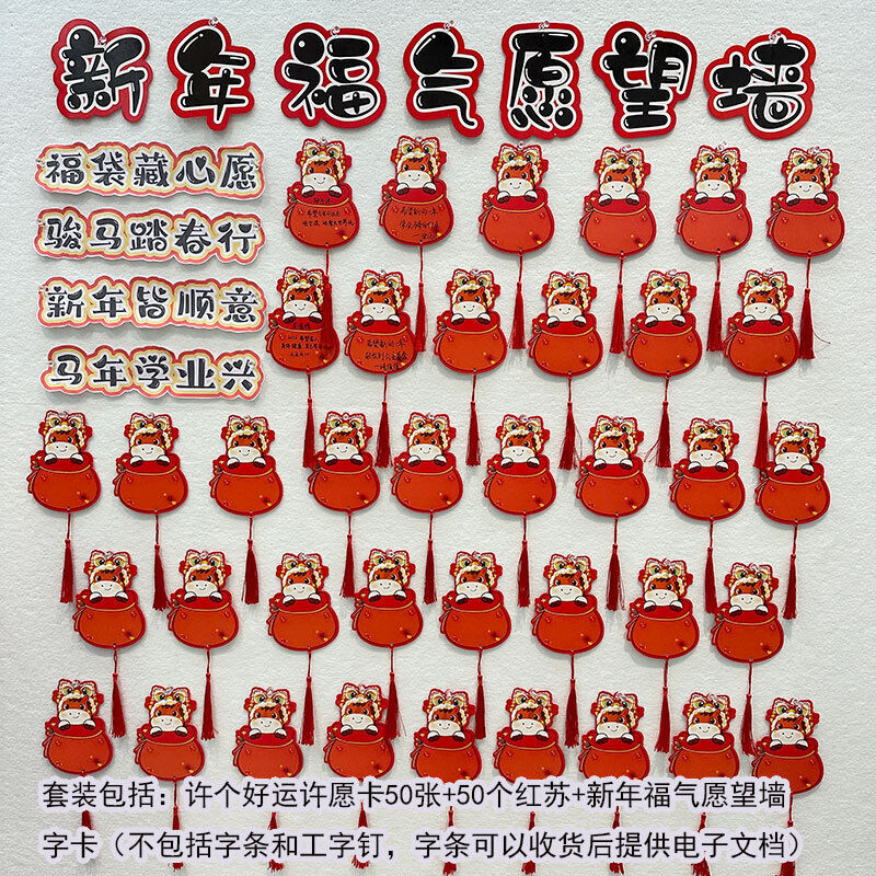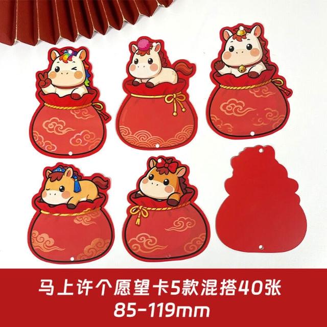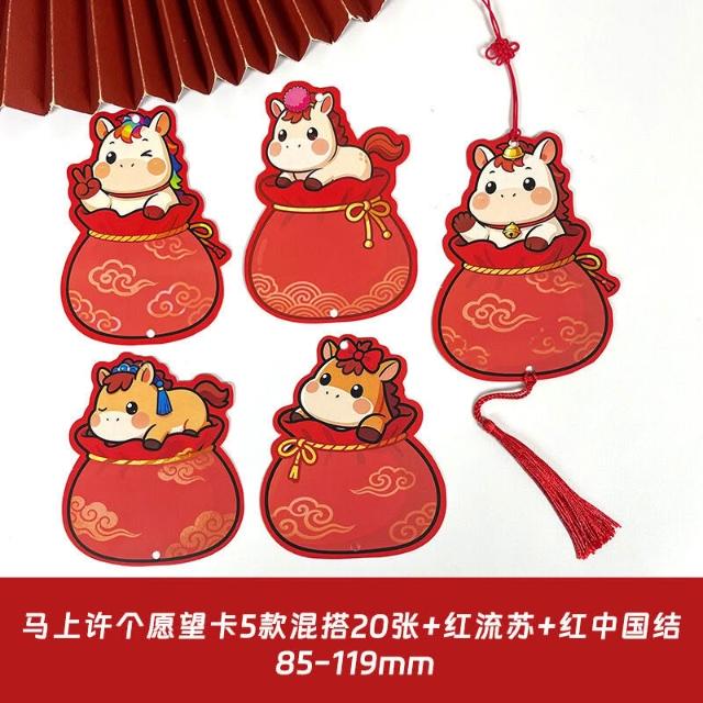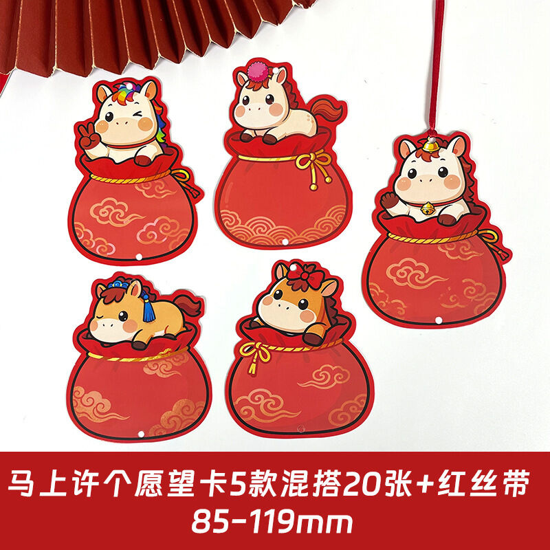 2026新年福氣願望墻貼 卡通馬年福袋 手寫心願空白卡片