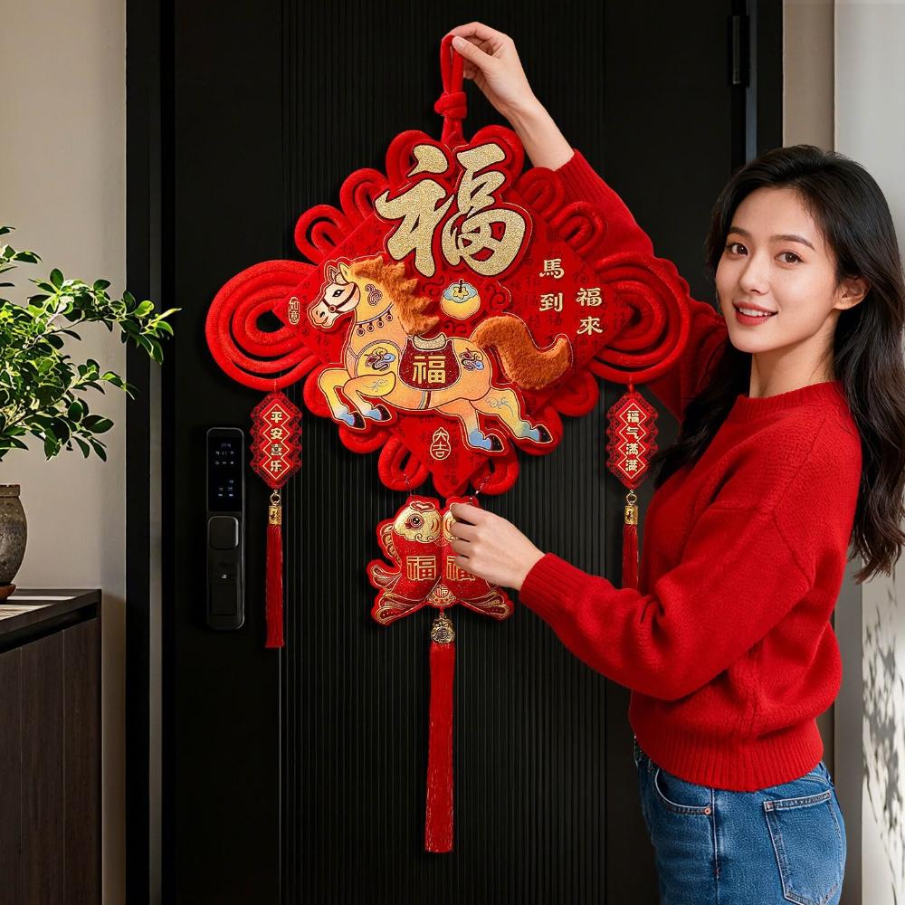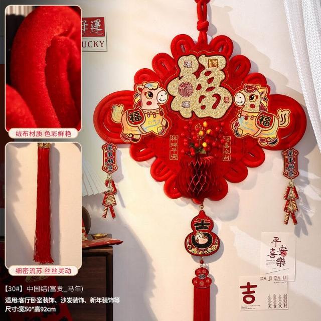 2026馬年中國結掛件 毛絨福字掛飾 春節過年客廳入戶門玄關新年裝飾