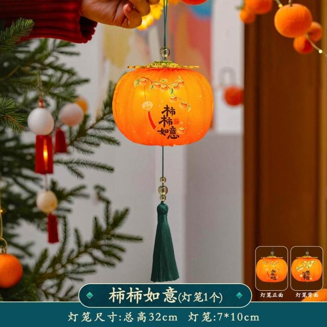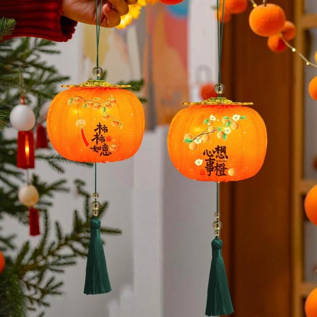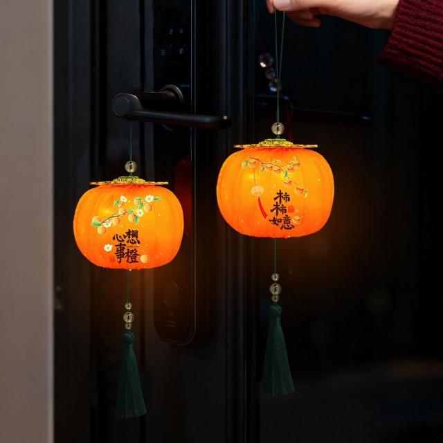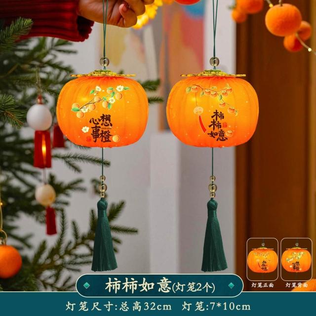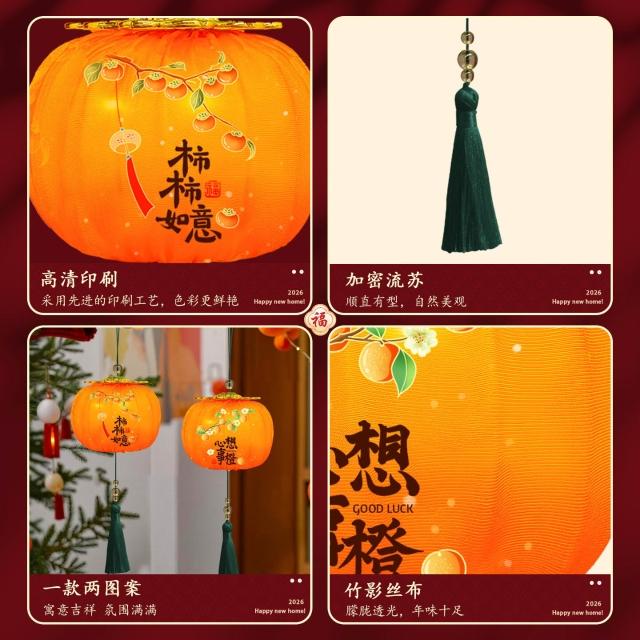 新年柿子燈籠掛飾 2026新款客廳發光花燈掛件 春節過年場景布置裝飾