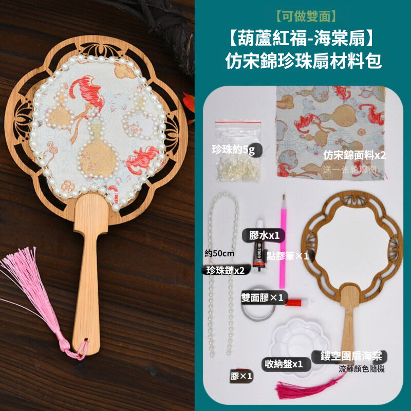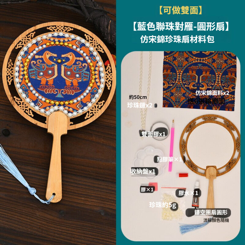 宋錦珍珠扇 手工DIY材料包 古風團扇 織錦扇子 擺攤小商品 實用禮物
