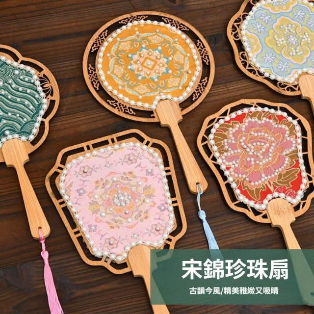 宋錦珍珠扇 手工DIY材料包 古風團扇 織錦扇子 擺攤小商品 實用禮物