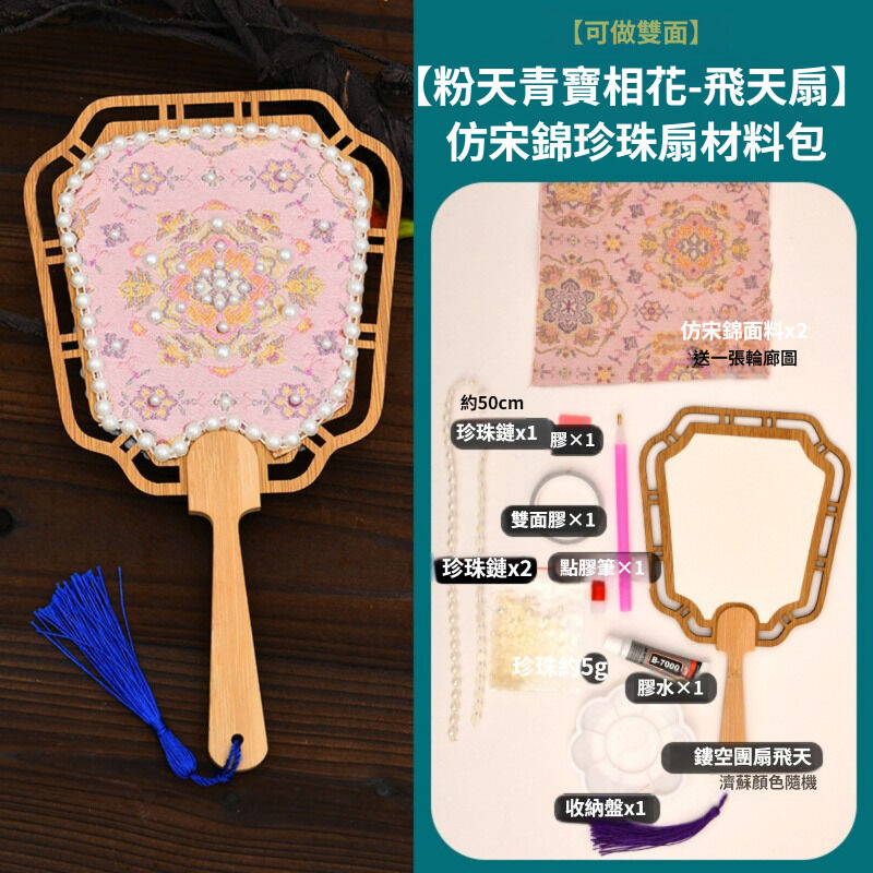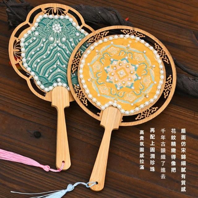 宋錦珍珠扇 手工DIY材料包 古風團扇 織錦扇子 擺攤小商品 實用禮物