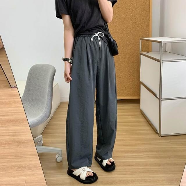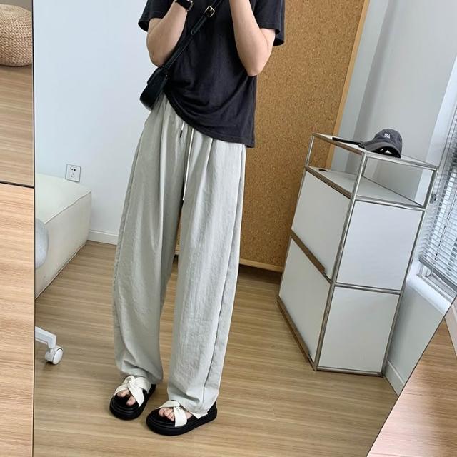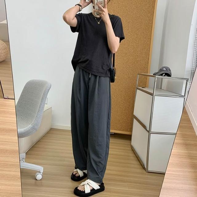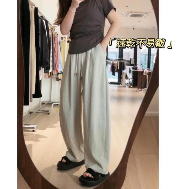 奈看服飾 自定款啞光色不易鄒涼感速乾鬆緊腰闊腿褲 不會透 垂感遮肉腿形三色可選 寬褲 山本褲