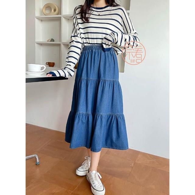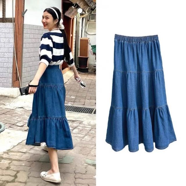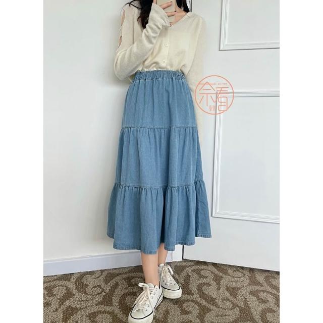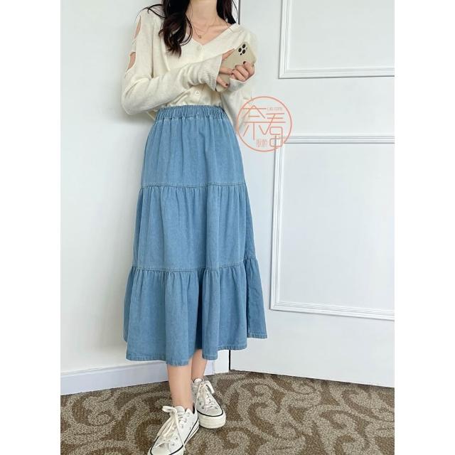 奈看服飾 現貨 懶人A字丹寧牛仔裙 顯瘦百搭 二色可選