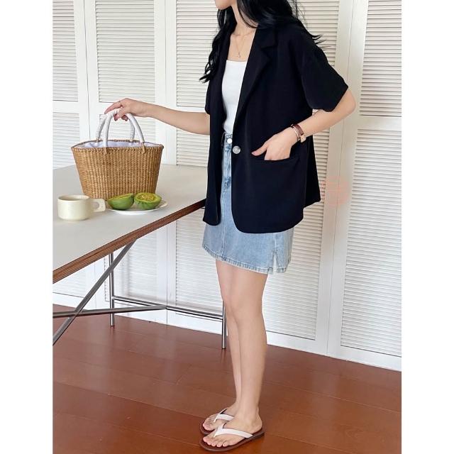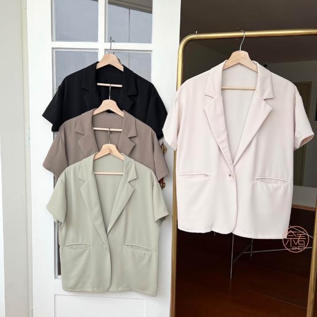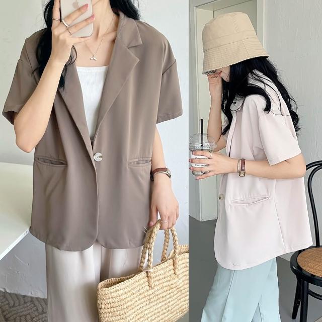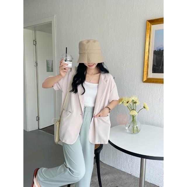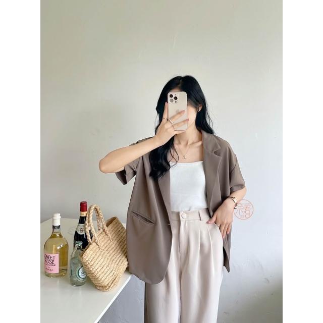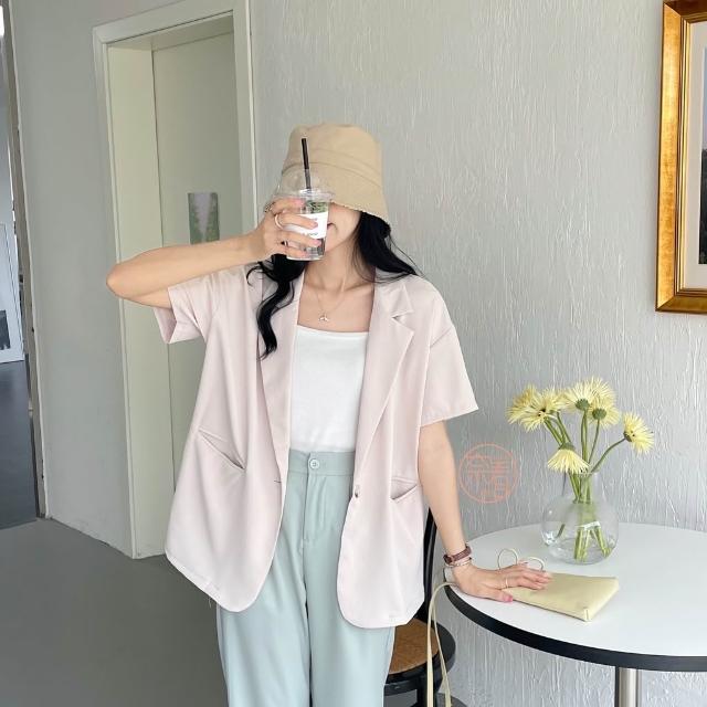 奈看服飾 薄搭莫蘭迪色純韓風款 翻領修飾線寬鬆有口袋西裝外套