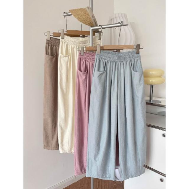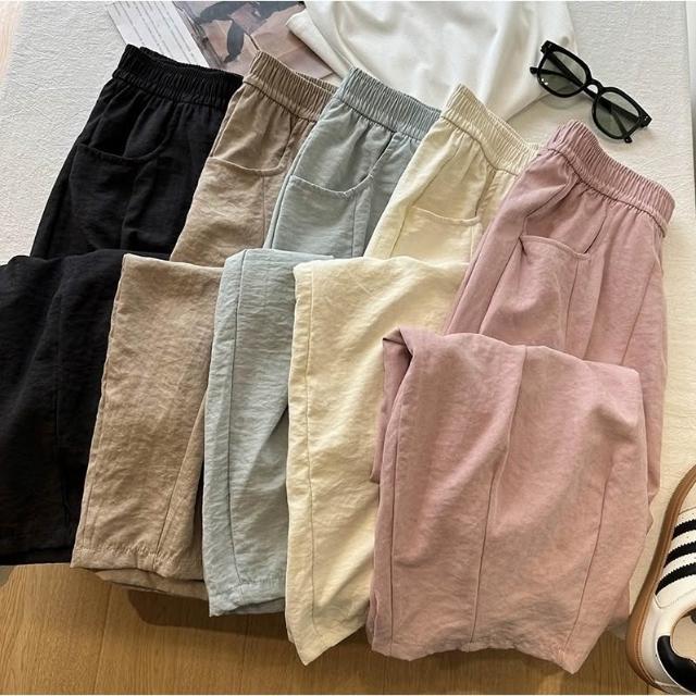 奈看服飾 現貨極薄霧感醋酸面料9分版雲朵褲 微醺色系山本褲 鬆緊腰多色可選 遮肉