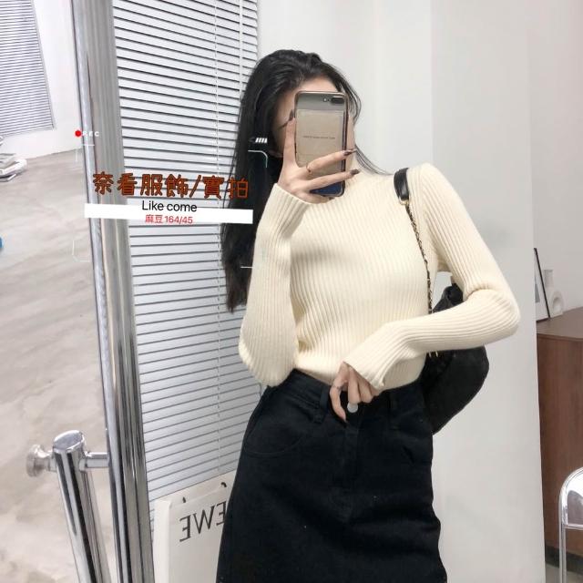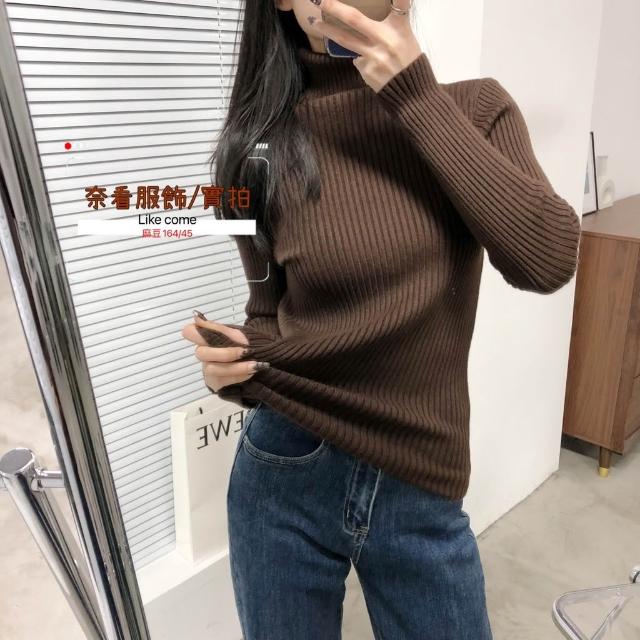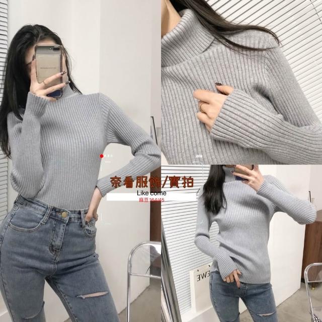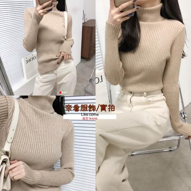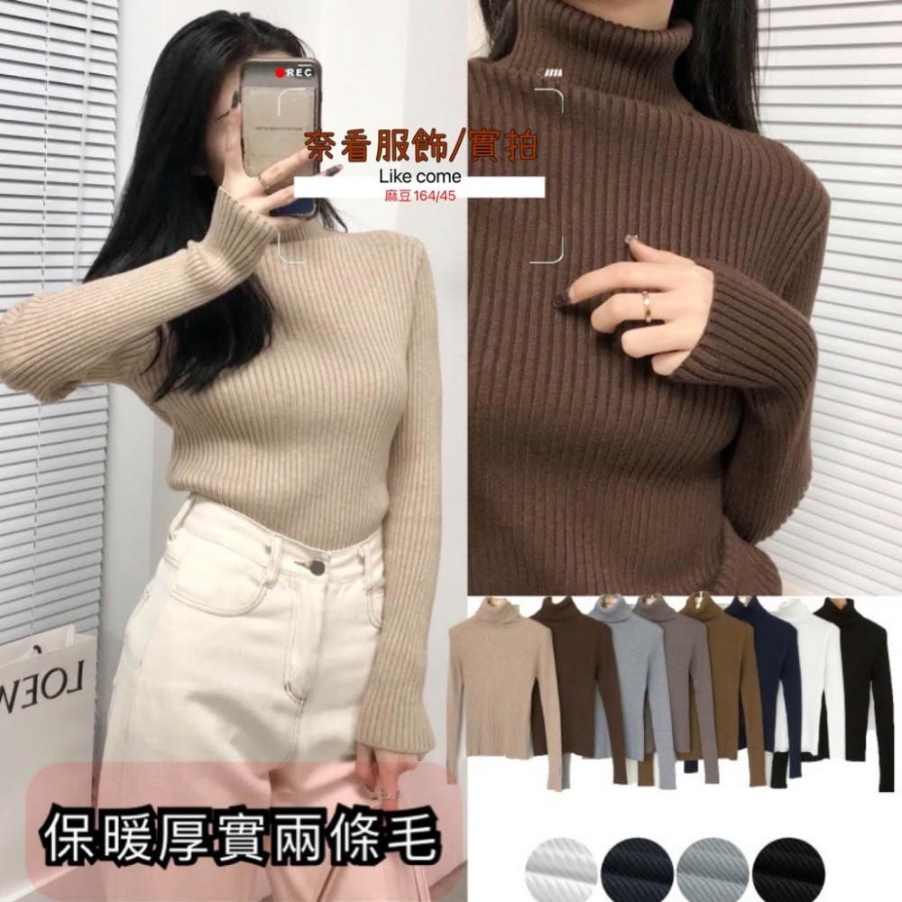 奈看服飾 現貨+預購 超彈力!厚實二條毛保暖反褶高領坑條修身毛衣/多色可選