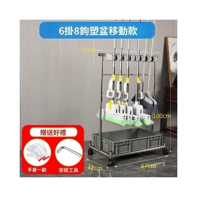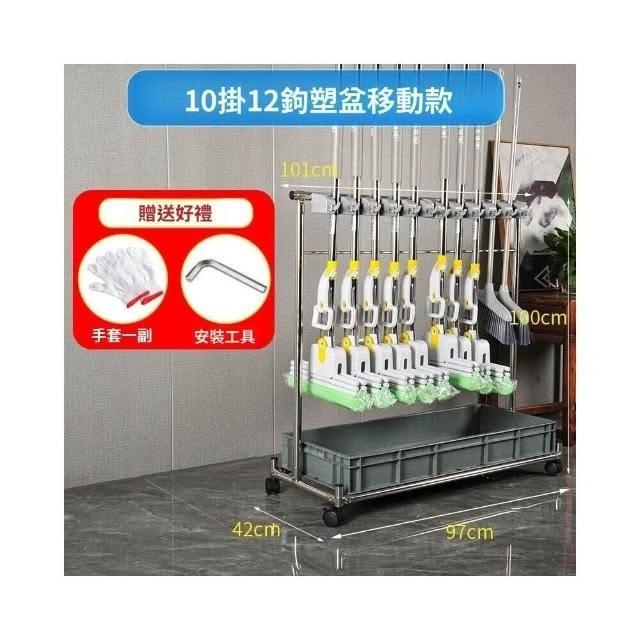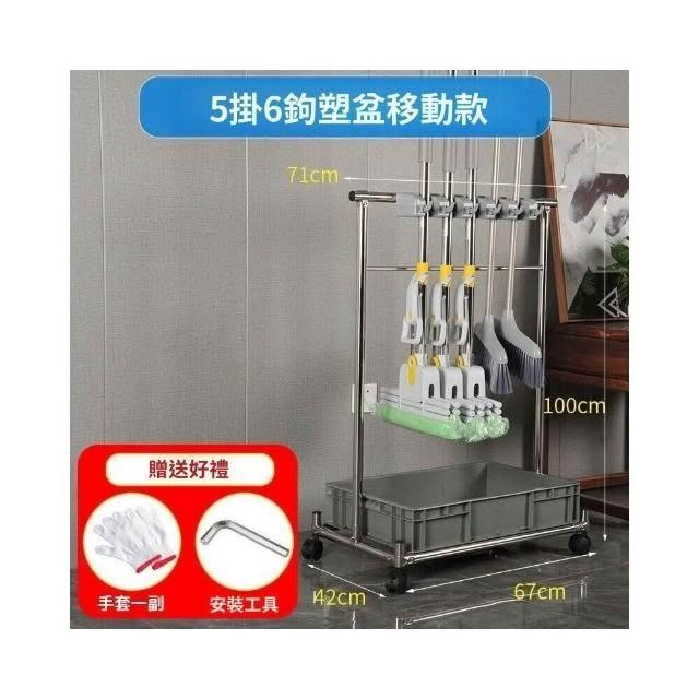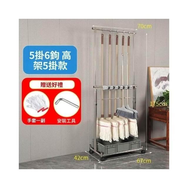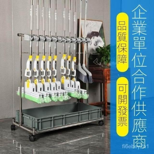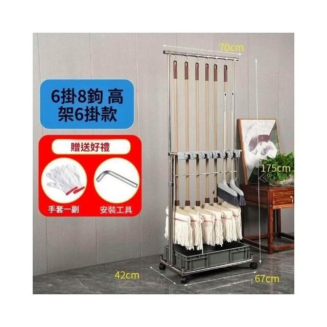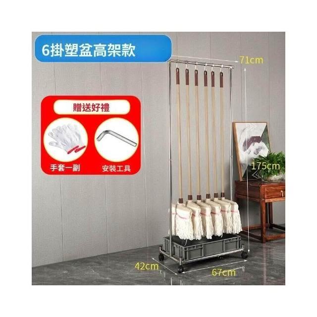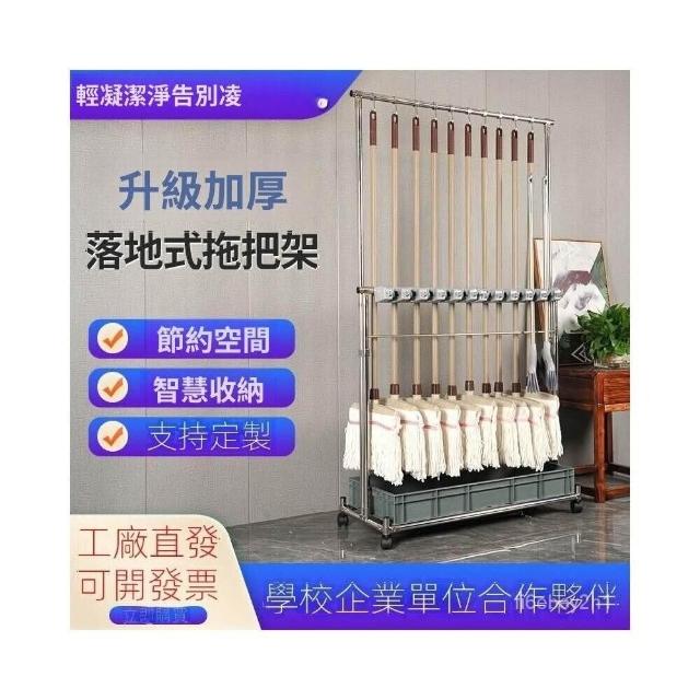 不銹鋼落地式拖把架可移動商用置物架墩佈掃把架清潔工具收納架子