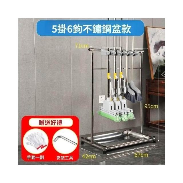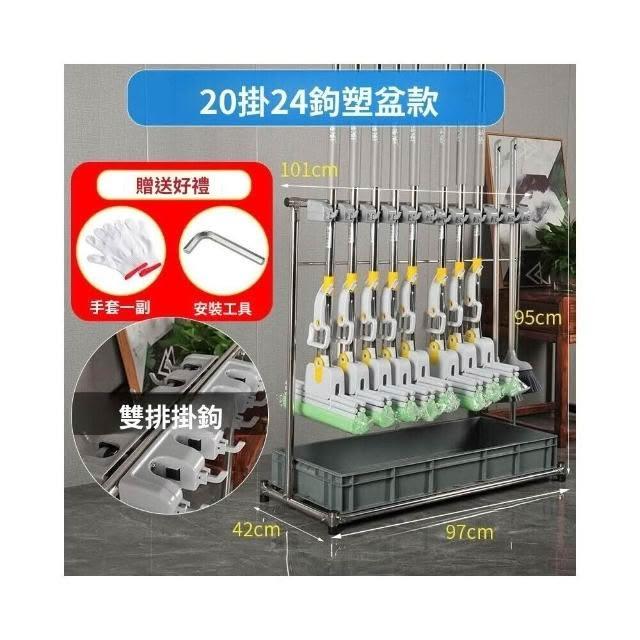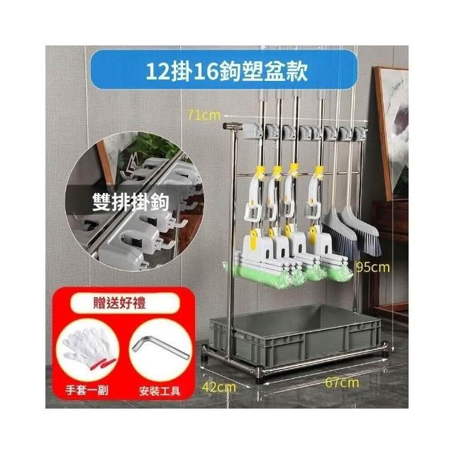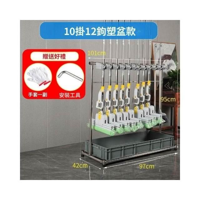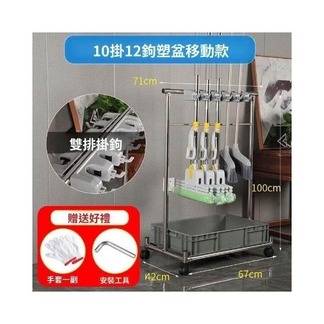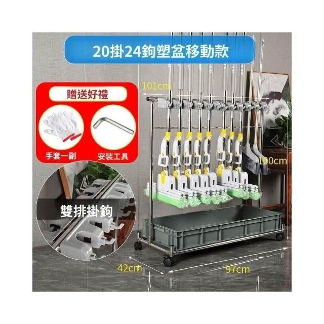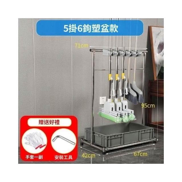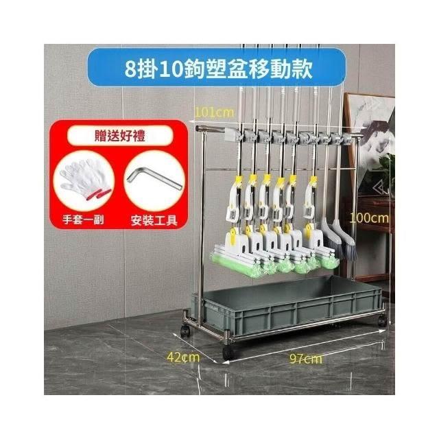 不銹鋼落地式拖把架可移動商用置物架墩佈掃把架清潔工具收納架子