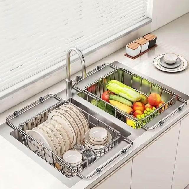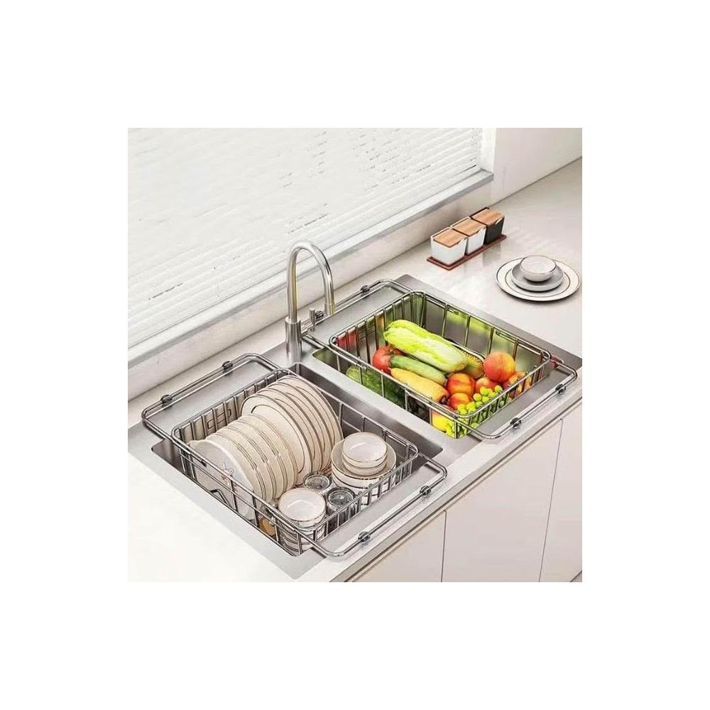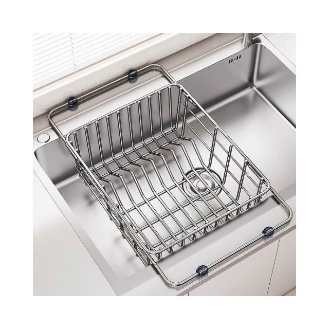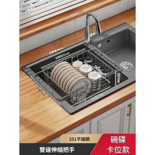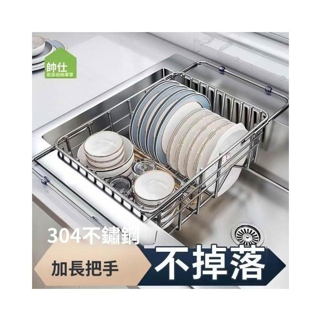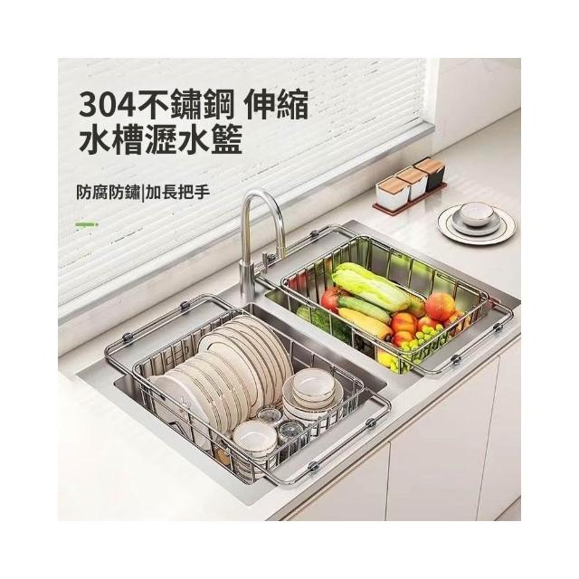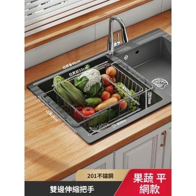 廚房瀝水籃 水槽 收納架 伸縮 水槽瀝水架 不鏽鋼 瀝水籃不鏽鋼 304不銹鋼廚房水槽瀝水架洗碗池伸縮瀝水籃洗菜盆碗碟收