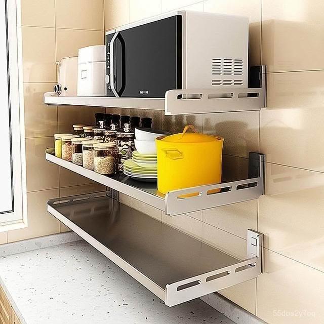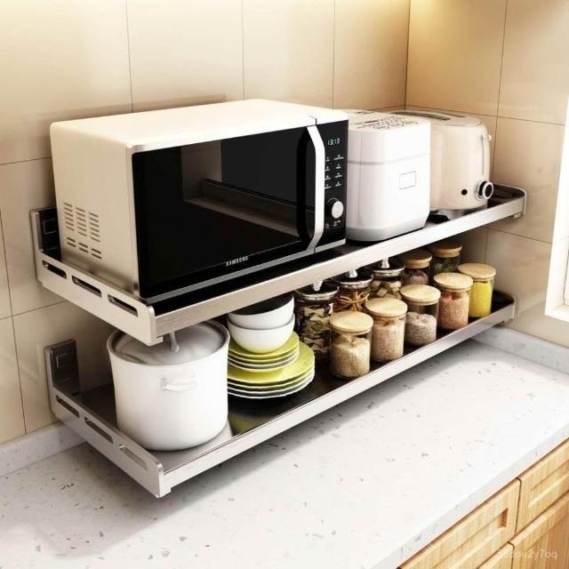 廠家直銷 304不銹鋼壁掛 墻上微波爐烤箱收納支架子 免打孔特厚架 廚房置物架