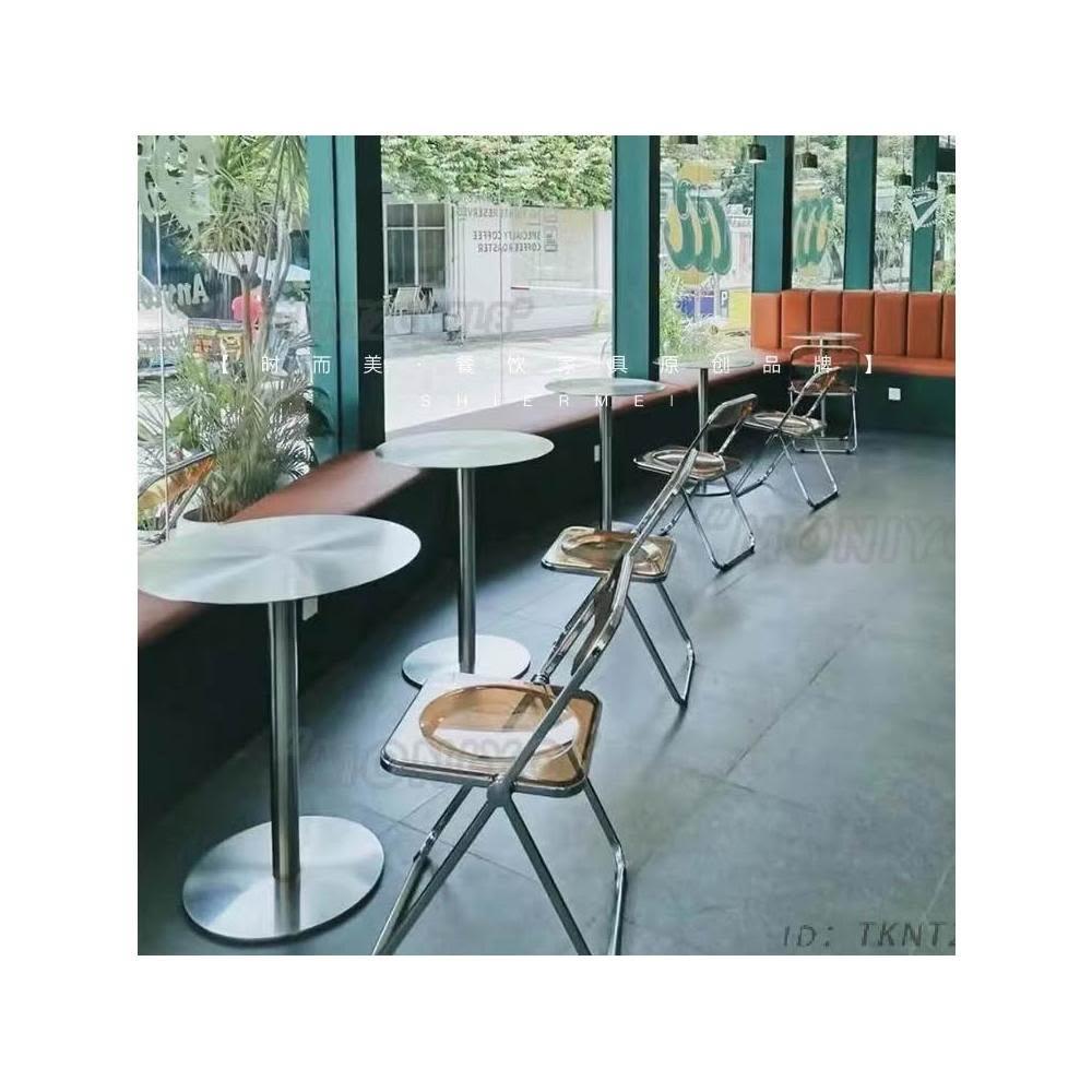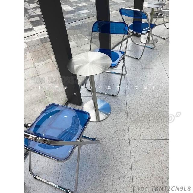 免運🌈免開發票🌈 奶茶 咖啡店 靠背椅 高腳凳子工業風咖啡店奶茶店不銹鋼桌椅組合網紅甜品小吃店透明摺疊椅商用