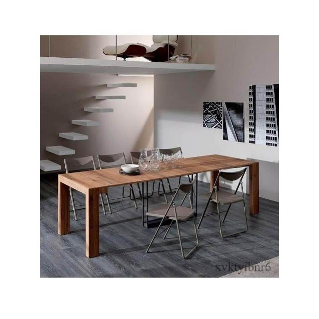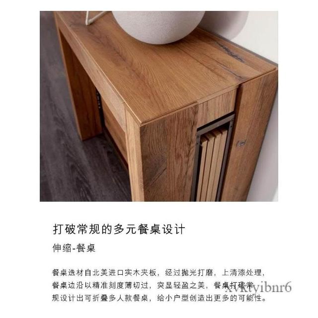 ✨ 廠家直銷✨ 北歐實木伸縮長方形可摺疊餐桌 8人簡約小戶型隱形餐桌椅組合 家用長條餐桌