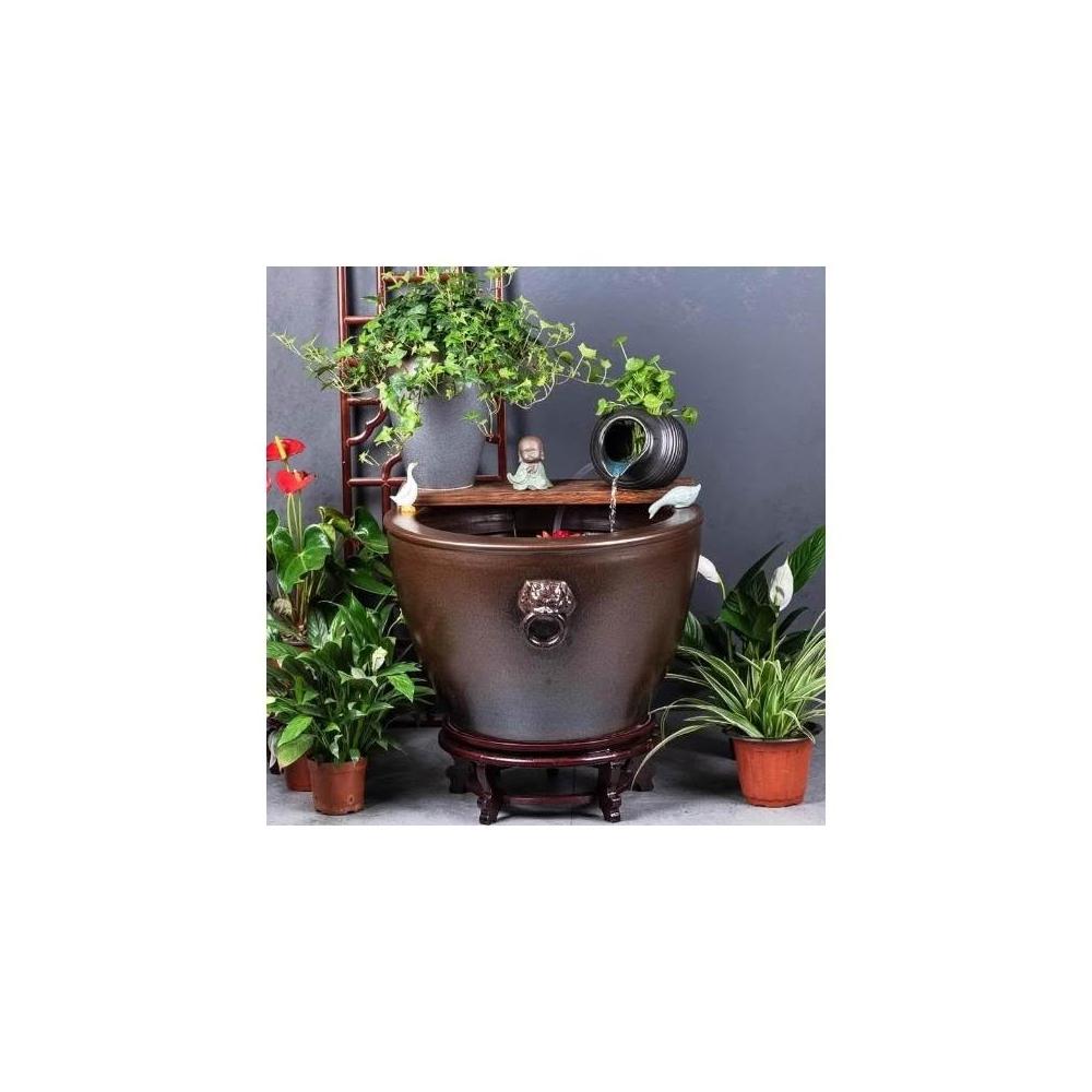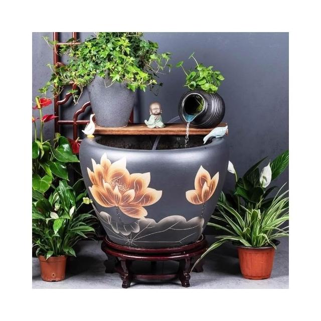 陶瓷大缸古法養魚缸客廳落地睡蓮荷花缸魚缸陶罐流水造景老式水缸