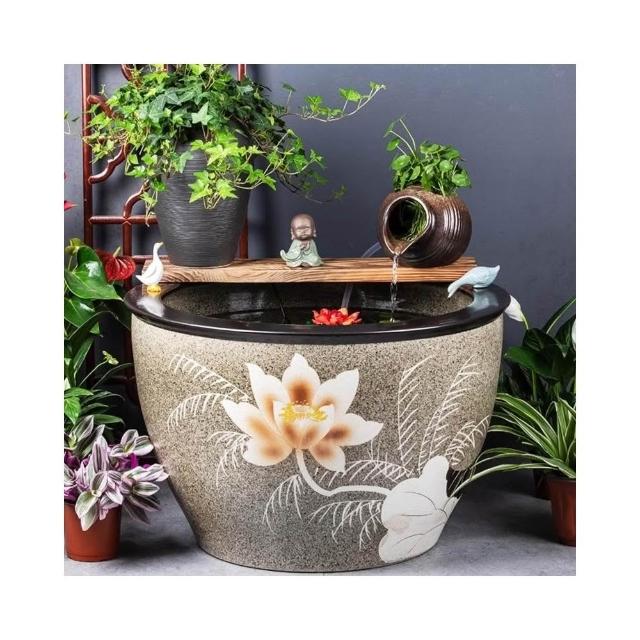 陶瓷大缸古法養魚缸客廳落地睡蓮荷花缸魚缸陶罐流水造景老式水缸