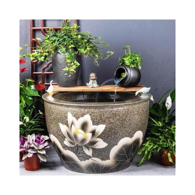 陶瓷大缸古法養魚缸客廳落地睡蓮荷花缸魚缸陶罐流水造景老式水缸
