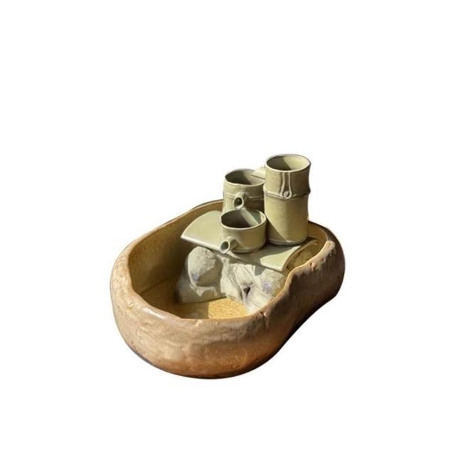 陶瓷魚缸侘寂風古法養魚水循環青鳉金魚桌面小型生態缸
