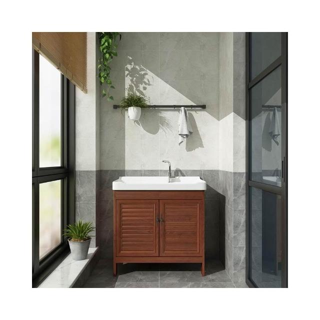 落地陽臺洗衣櫃 帶搓衣板臺盆 水槽臉手池 家用衛生間超深陶瓷洗衣盆