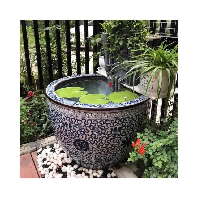 景德鎮陶瓷魚缸大缸養魚睡蓮荷花盆缸門海青花瓷仿古水缸庭院室外