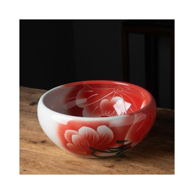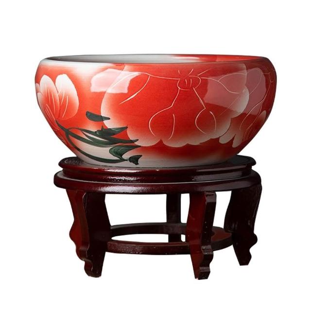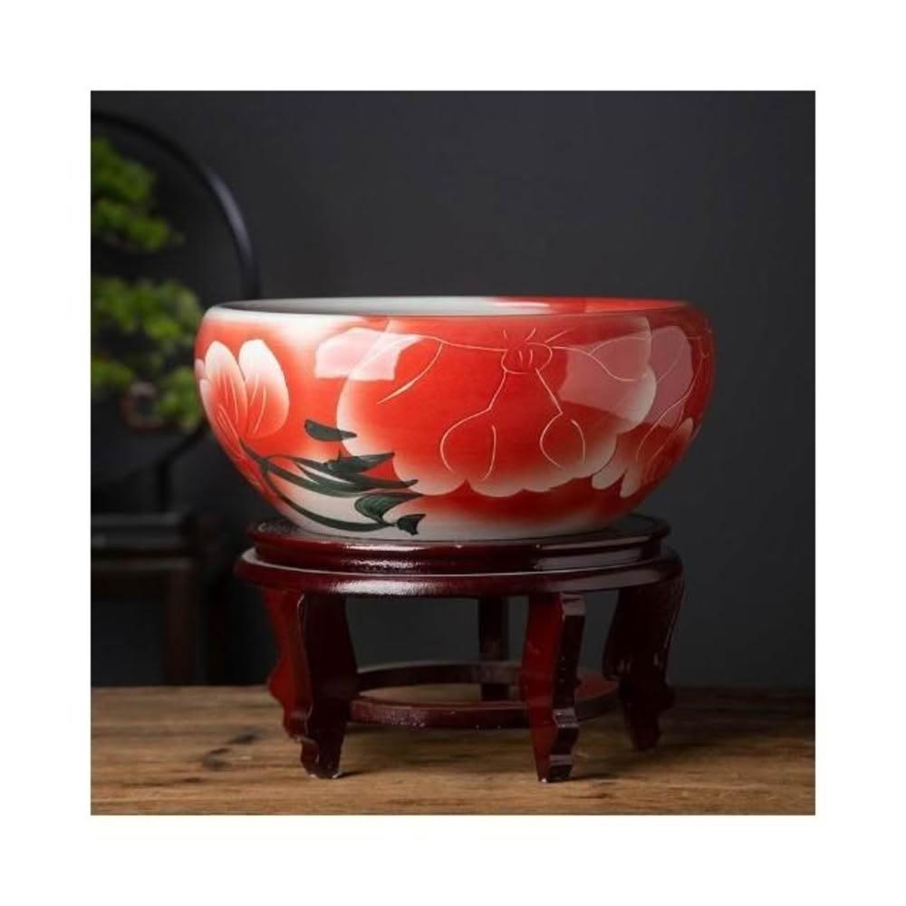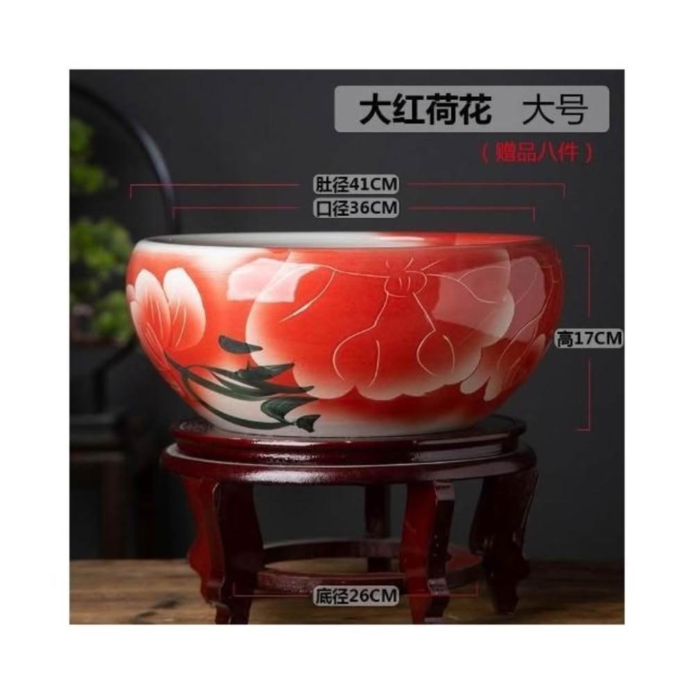 陶瓷花盆 喜慶客廳擺件 睡蓮魚缸 荷花盆景 德鎮碗蓮盆桌面金魚缸陽臺