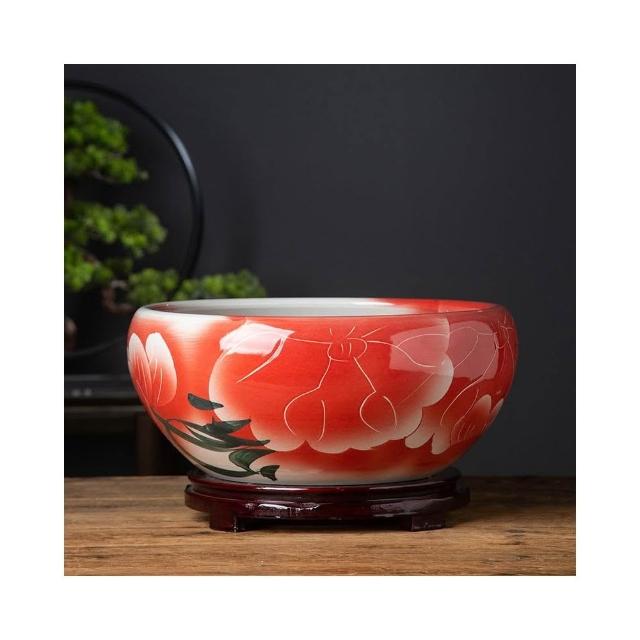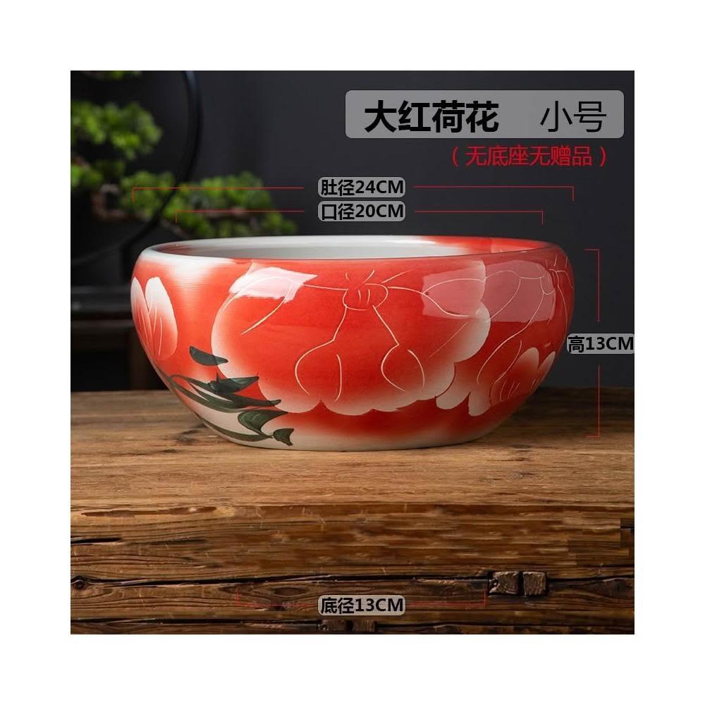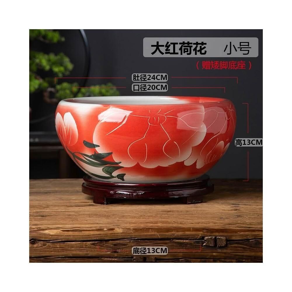 陶瓷花盆 喜慶客廳擺件 睡蓮魚缸 荷花盆景 德鎮碗蓮盆桌面金魚缸陽臺