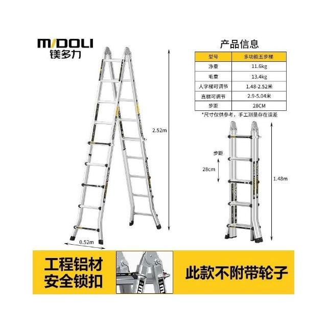 鎂多力伸縮梯子特厚家用多功能兩用樓梯加厚鋁合金折疊小巨人字梯