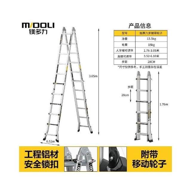 鎂多力伸縮梯子特厚家用多功能兩用樓梯加厚鋁合金折疊小巨人字梯