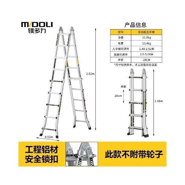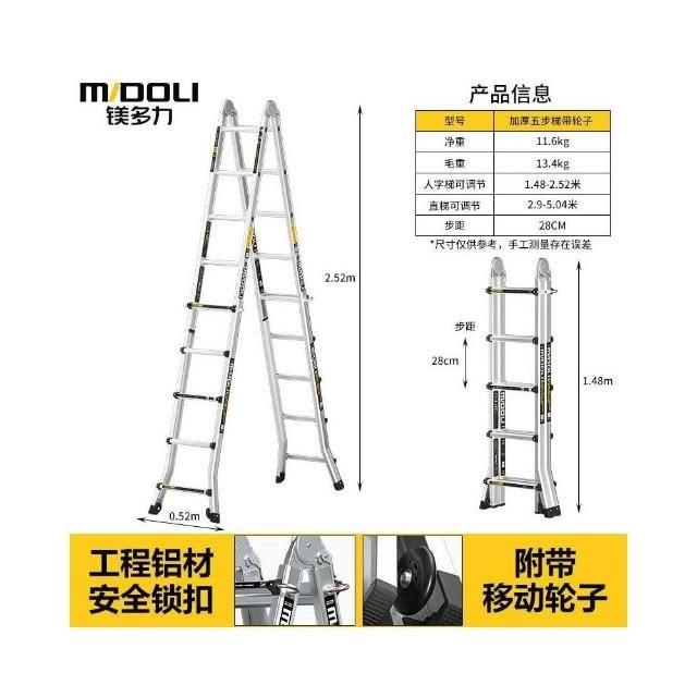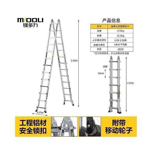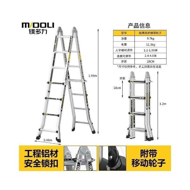 鎂多力伸縮梯子特厚家用多功能兩用樓梯加厚鋁合金折疊小巨人字梯