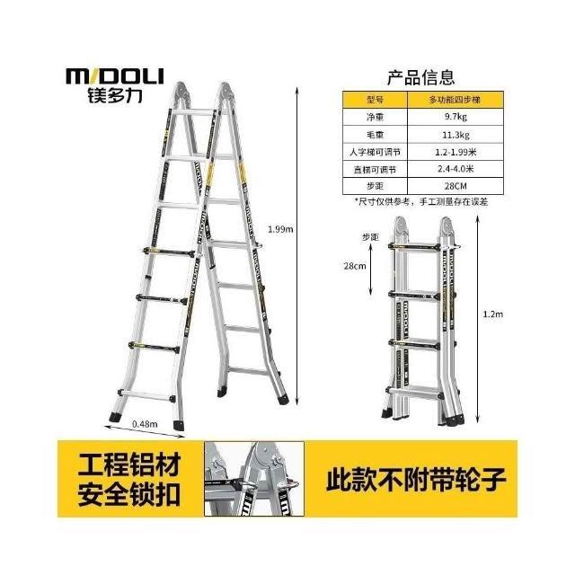 鎂多力伸縮梯子特厚家用多功能兩用樓梯加厚鋁合金折疊小巨人字梯
