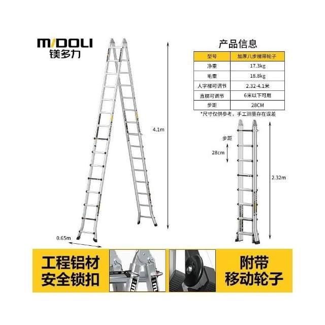 鎂多力伸縮梯子特厚家用多功能兩用樓梯加厚鋁合金折疊小巨人字梯