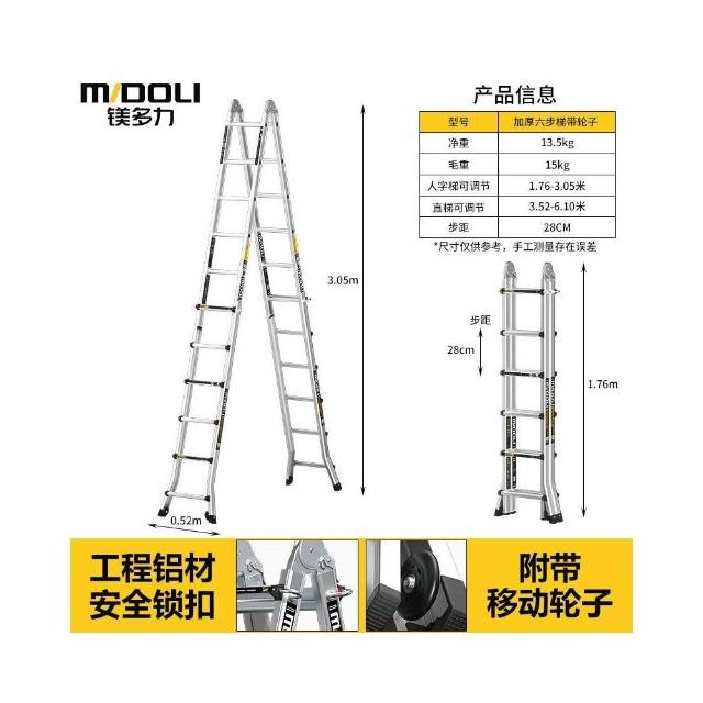 鎂多力伸縮梯子特厚家用多功能兩用樓梯加厚鋁合金折疊小巨人字梯